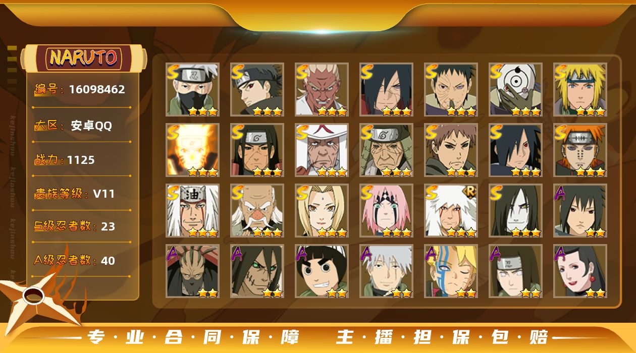 [16098462]v11有忍法帖 1125w战力 23S,40A,漂泊带土,佩恩,连体王者贵7,死门凯92片