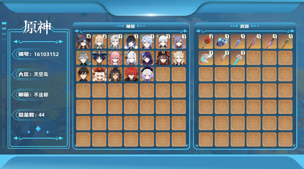 [16103152]56级/44黄/女主/19个五星角色/13个五星武器