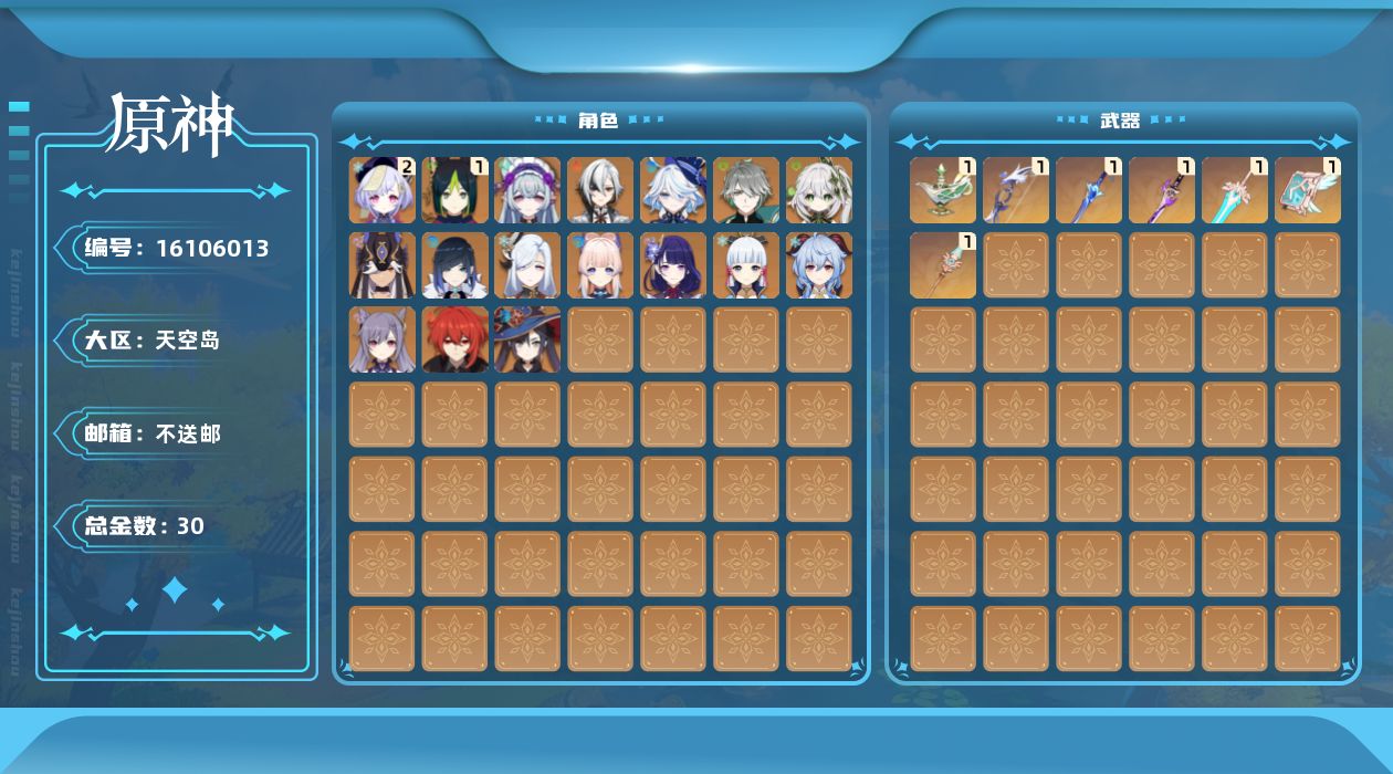 [16106013]57级/30黄/女主/18个五星角色/9个五星武器