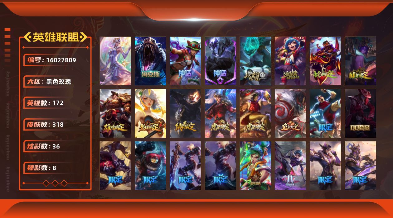 [16027809]可二次【特价出售/店主推荐】白银段位-172英雄-318皮肤-36炫彩-1终极-6神话-41限定-32传说-66史诗