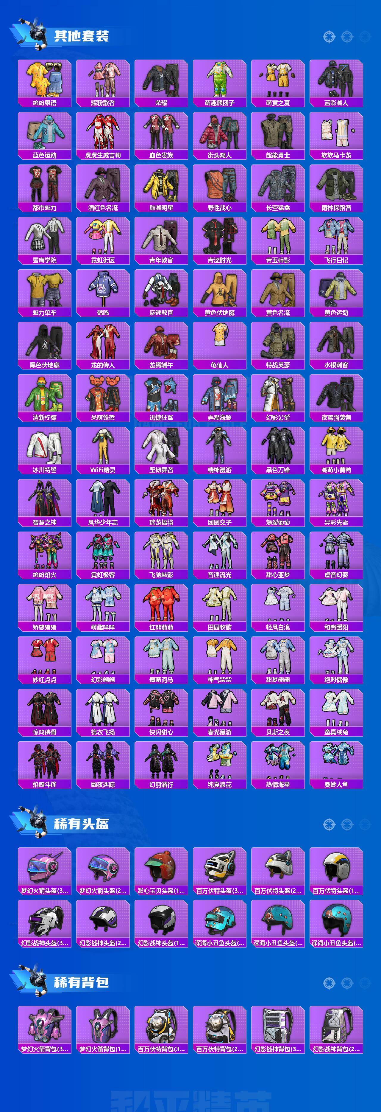 套装-派对舞王,套装-潮萌小黄鸭,套装-幻影战神,套装-天使彩虹糖,套装-蜜语绒猫,角色-电磁星,套装-呆萌铁蟹,套装-迅捷狂鲨
