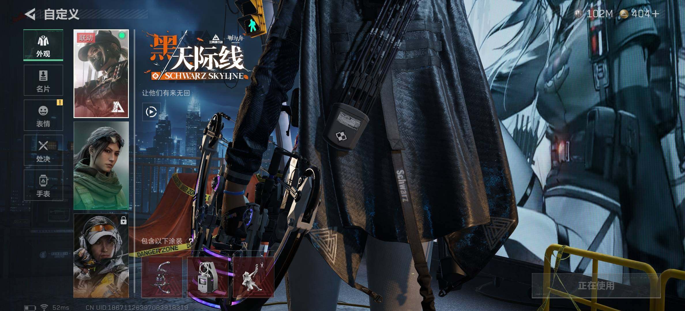 【干员外观】:露娜-黑·天际线,威龙-飞虎,红狼-电锯惊魂