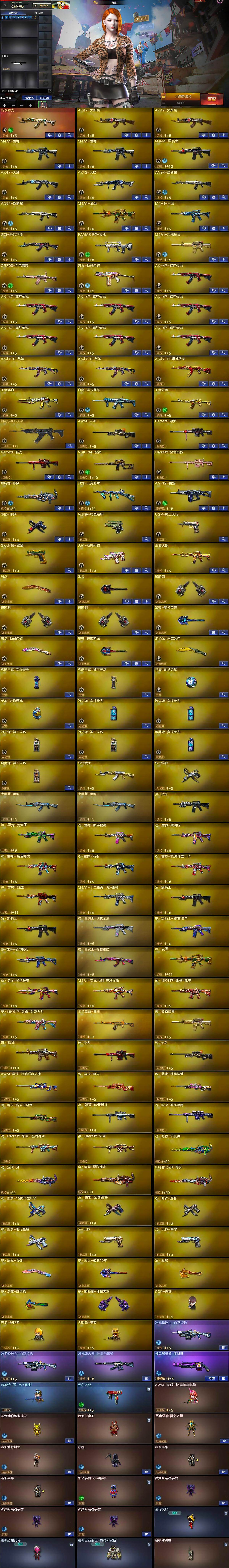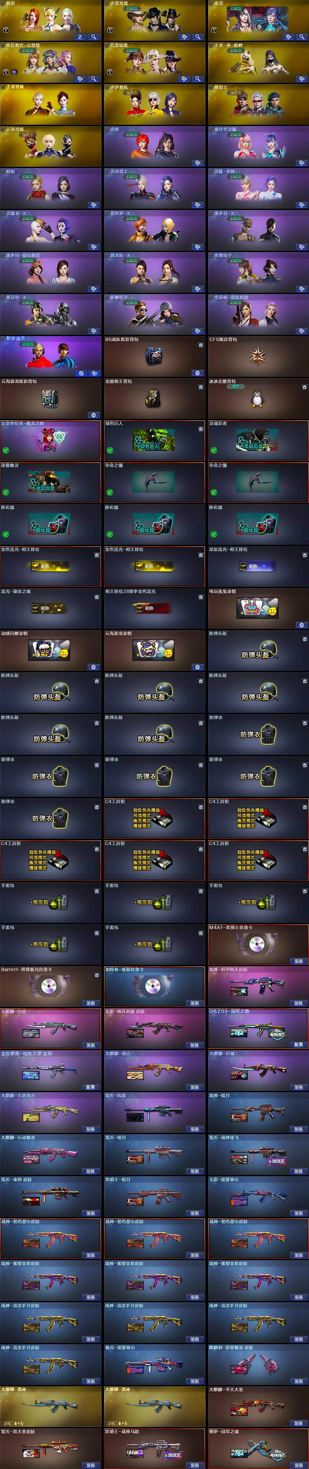 【英雄级武器】:AK47-火麒麟*2,M4A1-雷神*2,M4A1-黑骑士,AK47-无影,AK12-天启,AN94-超新星*2,M4A1-武圣,M4A1-青龙,无影-神兵利器,FAMAS G2-天戎,M4A1-玫瑰精灵,QBZ03-金色蔷薇,烈火-动感闪耀,AK-47-猩红传说*7,AK47-B-战神*2,AK47-B-常胜将军,王者龙血-觉醒版,白虎-电玩蓝兔,王者芳薇-觉醒版,