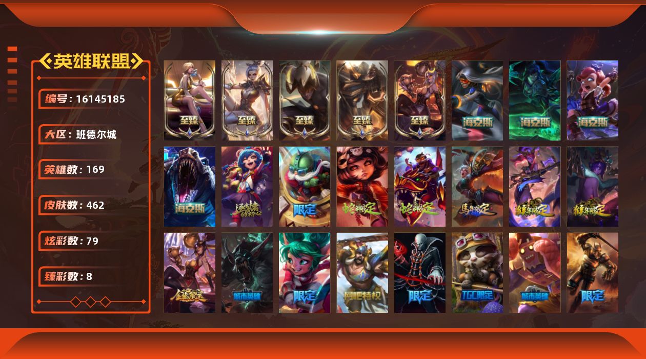 [16145185]【店主推荐捡漏号!可直接换绑】未定级段位-169英雄-462皮肤-79炫彩-0终极-11神话-82限定-36传说-118史诗
