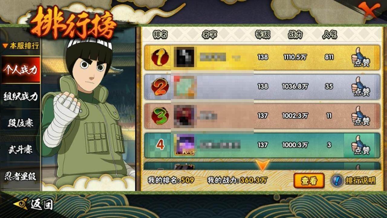 - 火影忍者手游/QQ/苹果QQ1-100区/1区李洛克