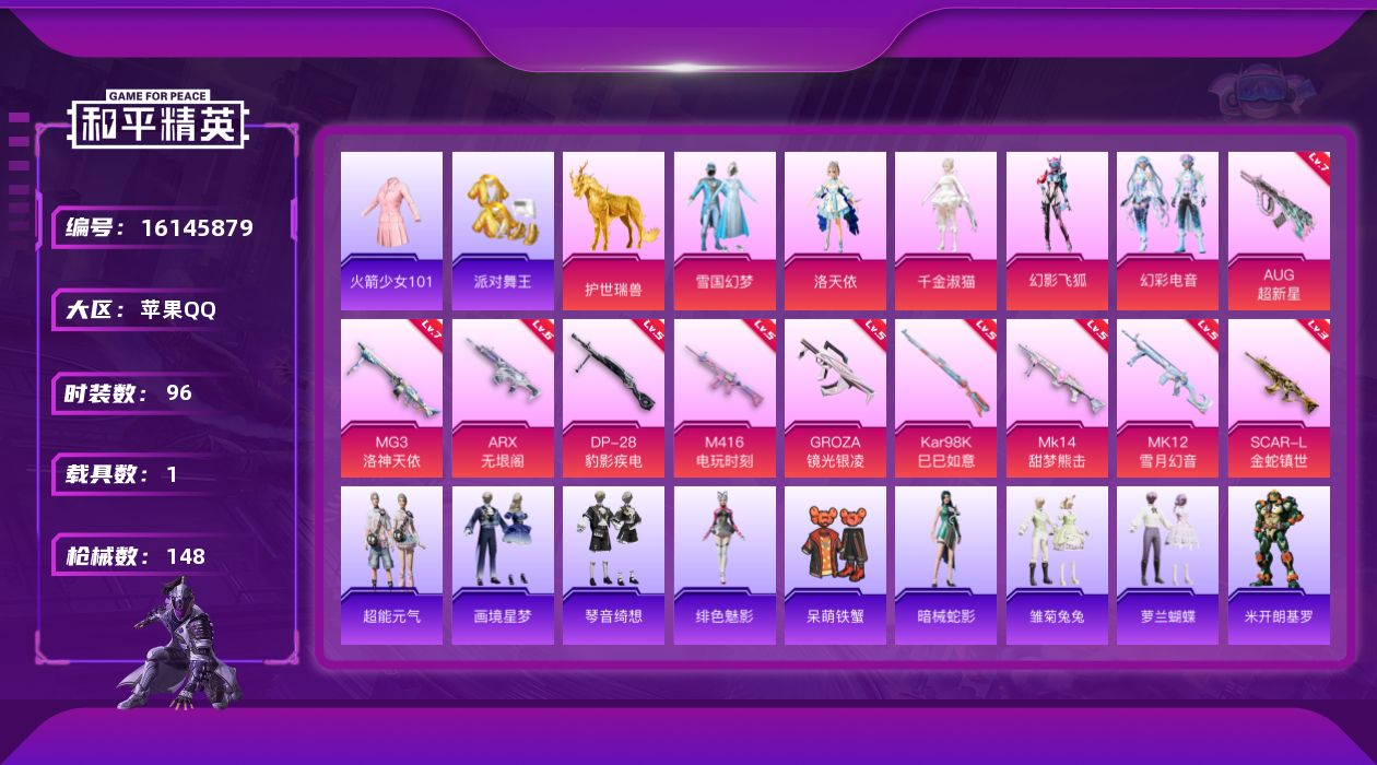 [16145879]可二次【特价出售/店主推荐】苹果 手Q-5粉装-10特效枪-1载具-4粉色飞行器-49212热力值-11王牌印记-96套装-148枪皮