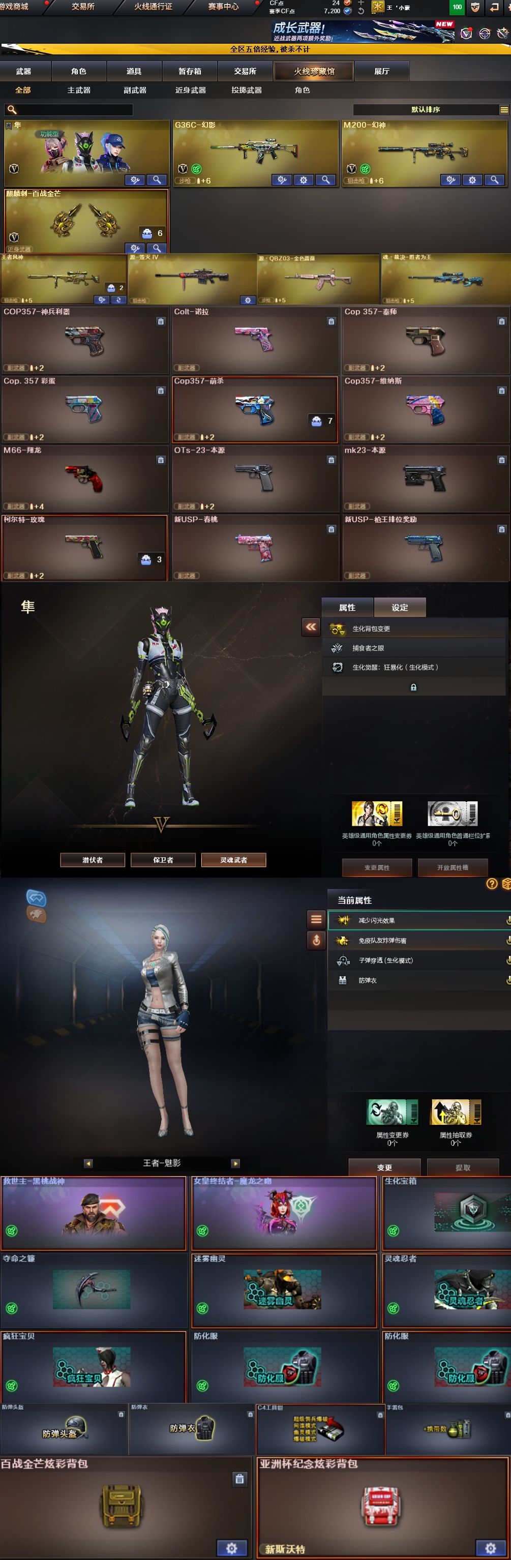 - [16335246]山西一区-26V-1王者-1炫金 【热门武器】:QBZ03-金色蔷薇,HK417-朱雀,M4A1-青龙,M200-幻神,金色蔷薇-古蛇迷踪,修罗-古蛇迷踪,死亡之眼,加特林-炼狱,COP 357-幻灵,沙鹰-修罗 【王者炫金武器】:炫金武士 【皮肤】:雷神-源计划2.0专属 皮肤,火麒麟-平天大圣,毁灭-黑大圣皮肤,AK47-B-常胜将军-曹操,AK47-B-常胜将军-刘备 【角色】:影豹,蛇隐宗,乔伊教练,嘉年华灵狐,娟娟,兰-新年限定,灵狐者-X,曼陀罗-X,潘多拉-X,蛇姬,蜀雪 【人偶武器】:AWM-灵狐-15周年嘉年华,迷你深渊冰龙,夺魂,生化手雷-机甲核心,深渊终结者手雷*2,闪光弹-貂蝉,高爆手雷-大乔,迷你艾比,灵狐娃娃手雷 【暴走生化】:死亡之眼 【挑战大师】:神圣爆裂者III,AK47-冰龙粉碎者,冰龙粉碎者-白马银枪,神圣爆裂者-末日III 【英雄级武器】:AK47-火麒麟,M4A1-雷神,M4A1-青龙,HK417-朱雀,无影-神兵利器,金色蔷薇-古蛇迷踪,QBZ03-金色蔷薇,王者之心-觉醒版,AK-47-猩红传说,AK47-B-战神,AK47-B-常胜将军,Barrett-毁灭,M200-幻神,加特林-炼狱,沙鹰-修罗,COP 357-幻灵,修罗-古蛇迷踪,幻灵之锋,高爆手雷-幻灵*3,高爆手雷-古蛇迷踪,闪光弹-幻灵*2,烟雾弹-幻灵*2,烟雾弹-古蛇迷踪 【道具】:CFS限定背包,古蛇迷踪炫彩背包,战舰背包,超级背包,女皇终结者-魔龙之吻,绿色巨人,变异宝贝,生化弹匣,夺命之镰,防化服,金色流光-枪王排位*2,星辰流光-枪王排位,巅峰赛先锋-金色流光,枪王排位28赛季金色流光,枪王排位29赛季金色流光,古蛇迷踪打击特效,蛇隐宗表情,EP战队名片,EP战队喷图,防弹头盔*5,防弹衣*5,C4工具钳*5,手雷包*5 【特殊枪械】:1炼狱
