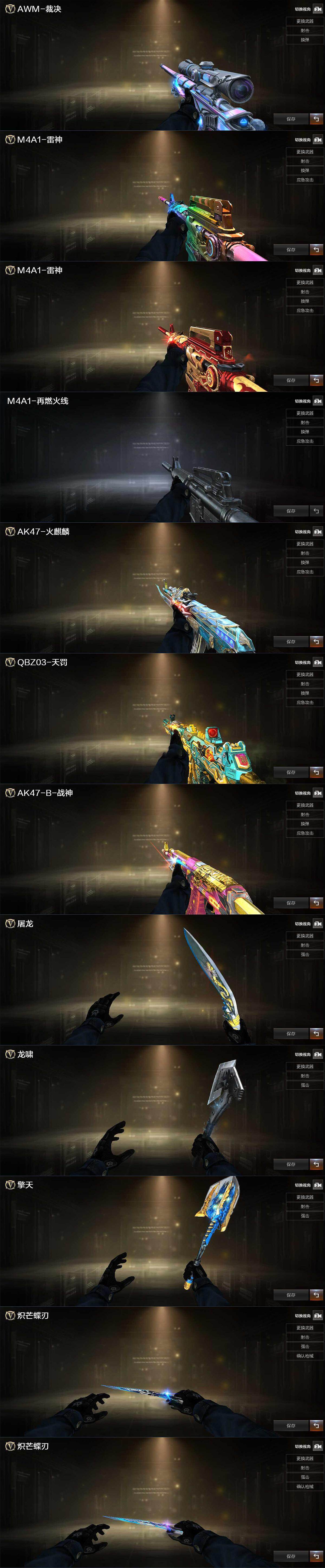 【英雄级武器】:AK47-火麒麟,M4A1-雷神,AK47-无影,AK12-天启,金色蔷薇-古蛇迷踪,死神-雪域霜狐,王者之圣-觉醒版,AK-47-猩红传说*2,AK47-B-战神*3,黑骑士-海王,AWM-裁决,炼狱-百战金芒,AA-12-雷霆,沙鹰-修罗,沙鹰-天神,柯尔特-荣耀世冠白鲨2023,柯尔特-竞技荣光*2,王者破空枪刃-觉醒版,修罗-古蛇迷踪,屠龙*3,龙啸,擎天,麒麟刺,擎天-竞技荣光,炽芒蝶刃,麒麟刺-百战金芒,高爆手雷-竞技荣光,高爆手雷-古蛇迷踪,闪光弹-竞技荣光,烟雾弹-竞技荣光,烟雾弹-古蛇迷踪,M4A1-赤狱骑士