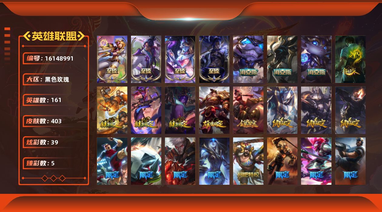 [16148991]【店主推荐捡漏号】白银段位-161英雄-403皮肤-39炫彩-0终极-8神话-63限定-39传说-92史诗