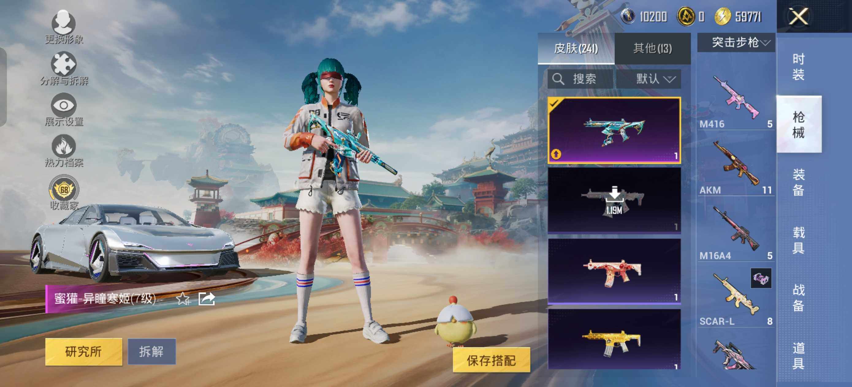 AKM-甜心宝贝,M416-电玩时刻,GROZA-镜光银凌,AUG-暖羊咩咩,M762-青锋波束,Kar98K-巳巳如意