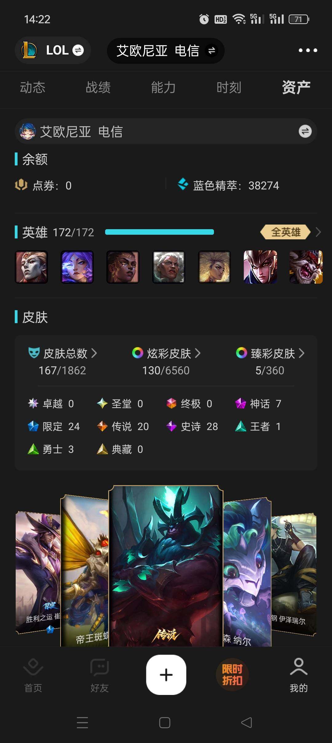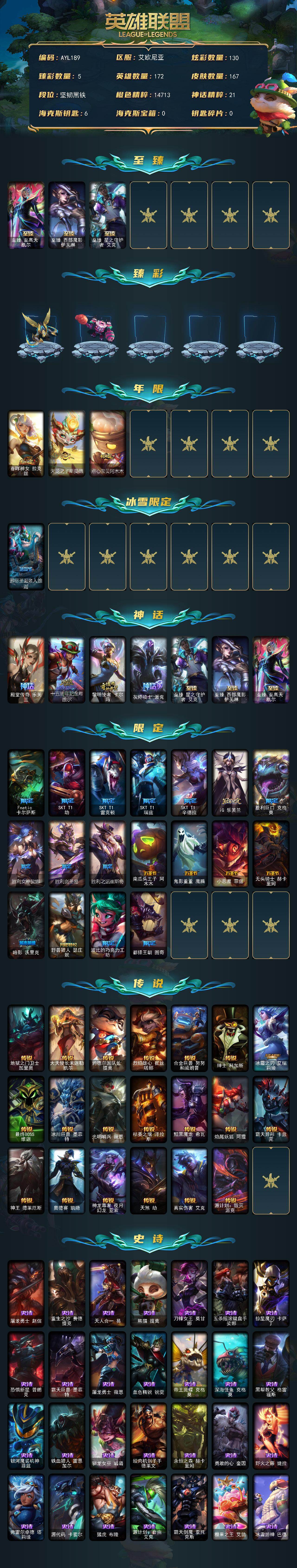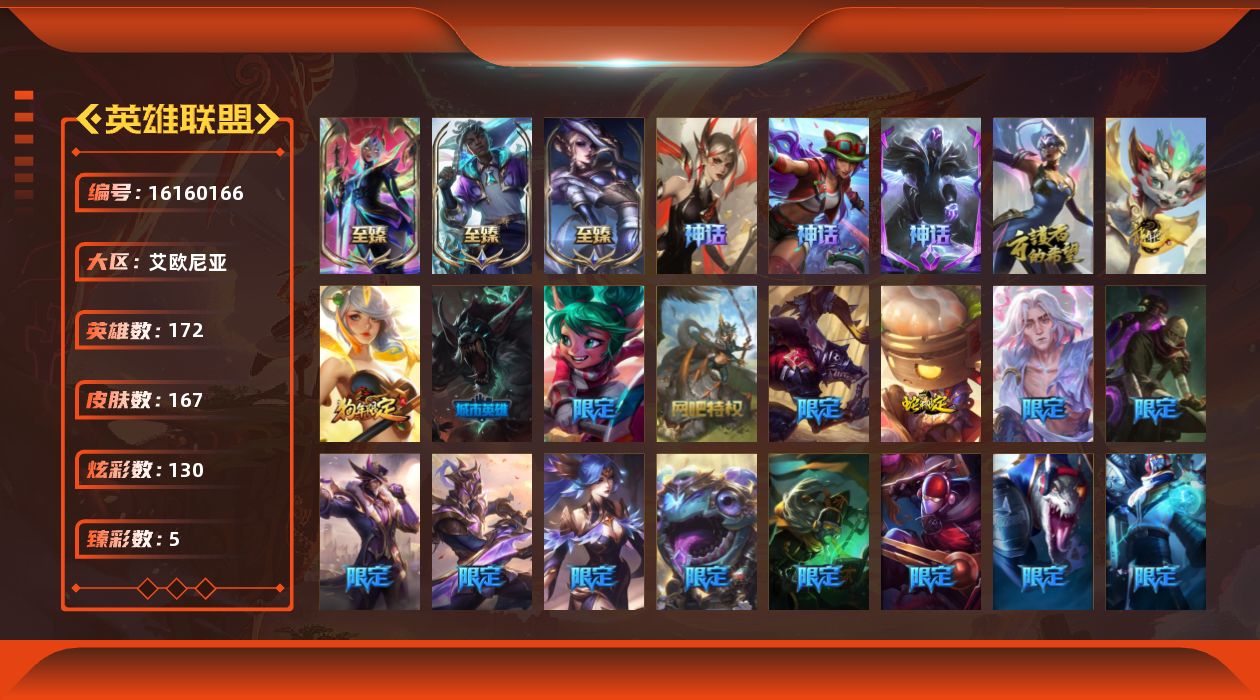 [16160166]【店主推荐捡漏号】未定级段位-172英雄-167皮肤-130炫彩-0终极-7神话-24限定-20传说-28史诗