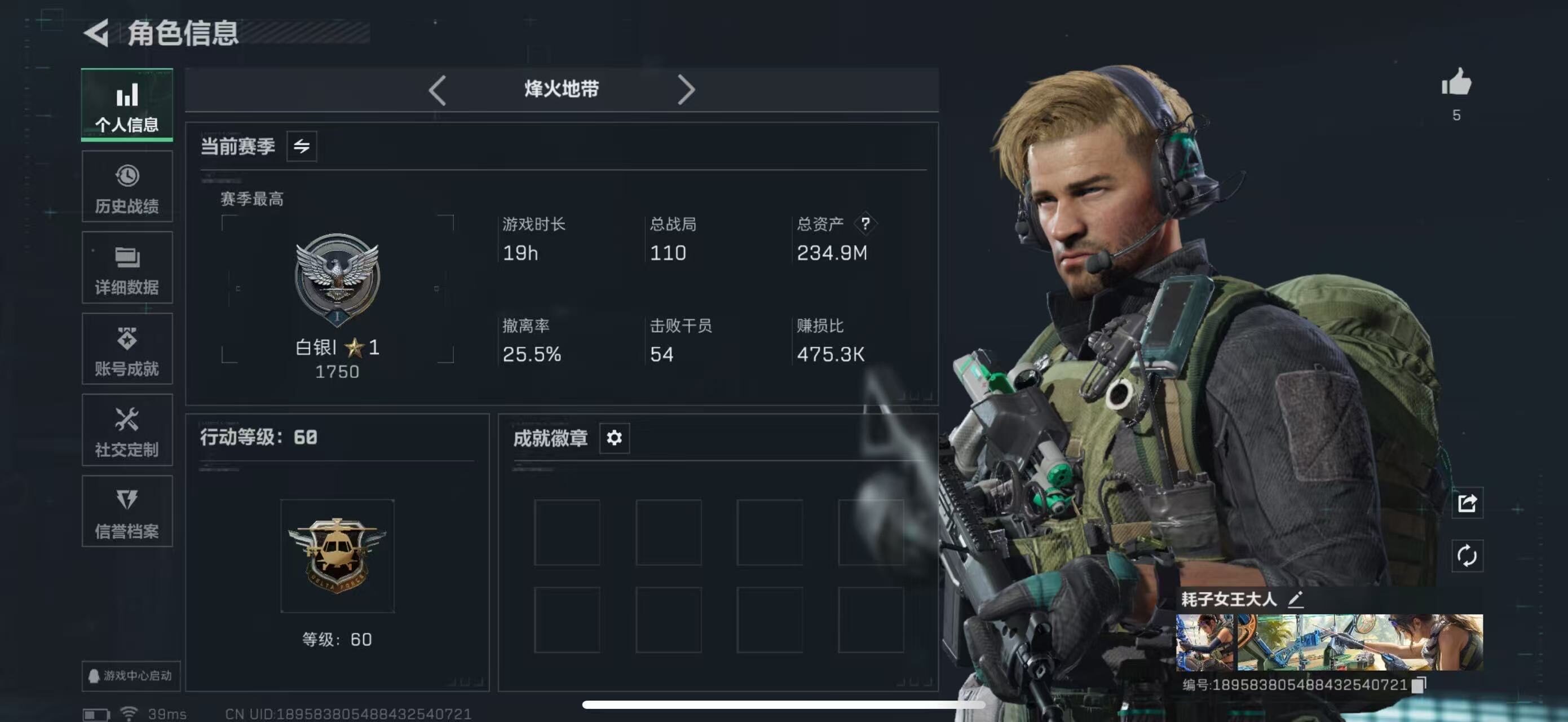 [16143410]【特价出售/店主推荐】234m总资产-152880k哈伏币-60烽火等级-白银-1战场等级-无军衔