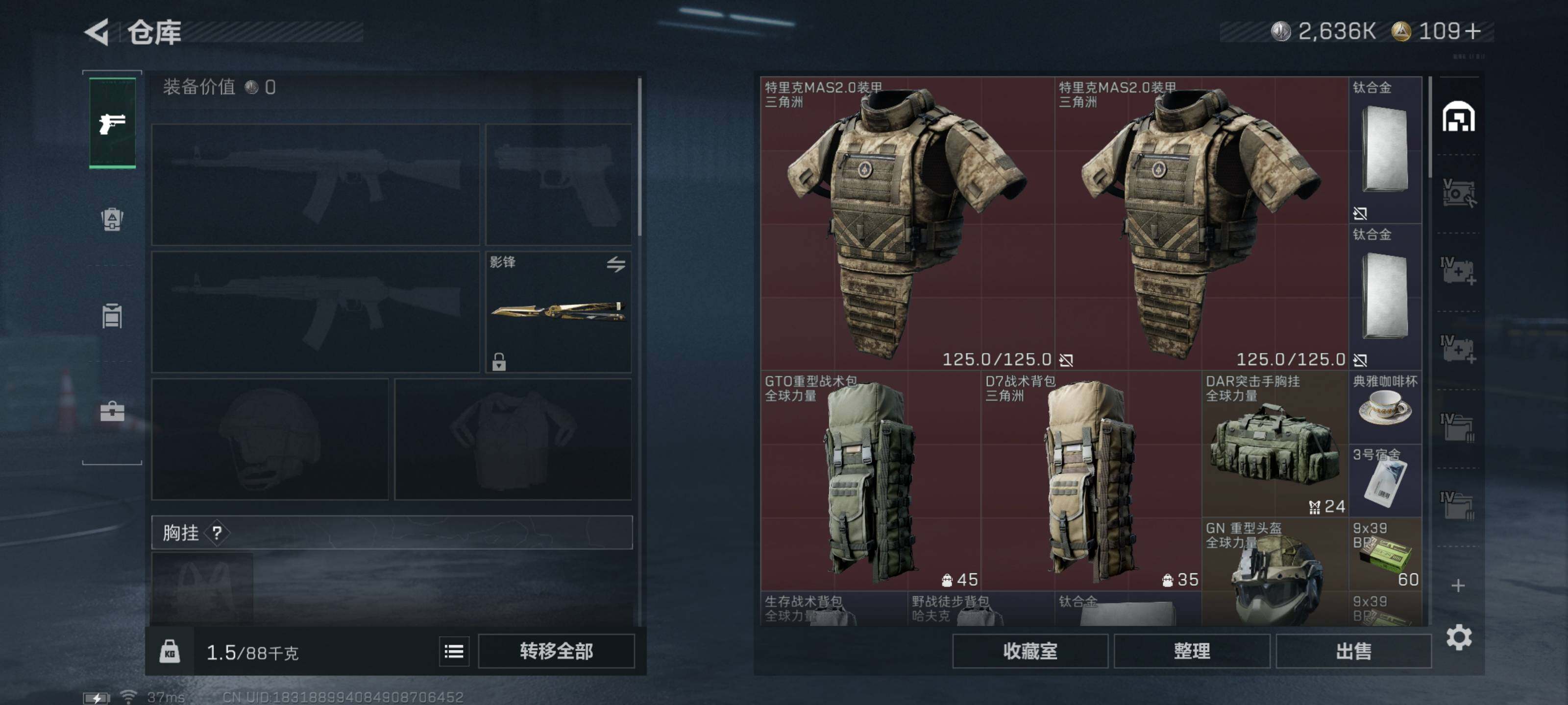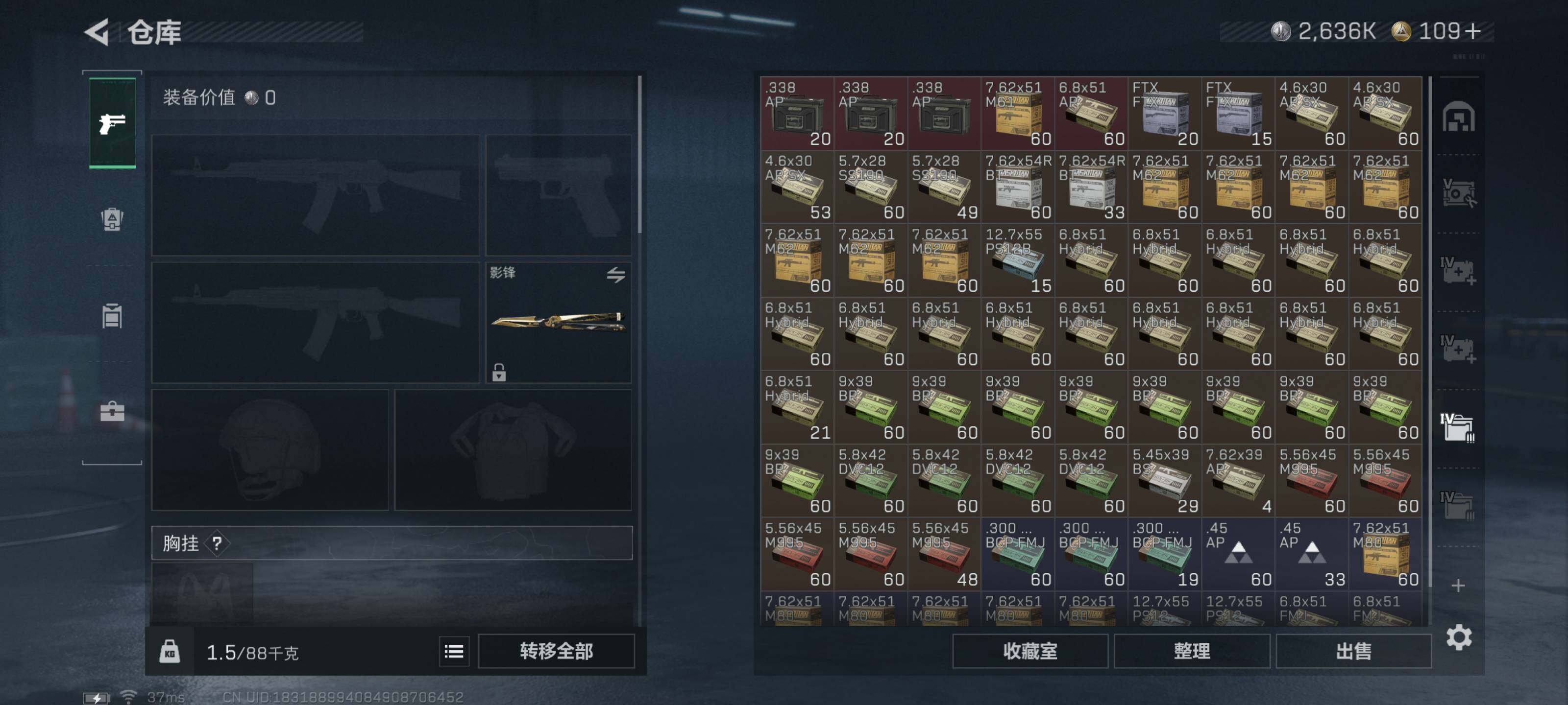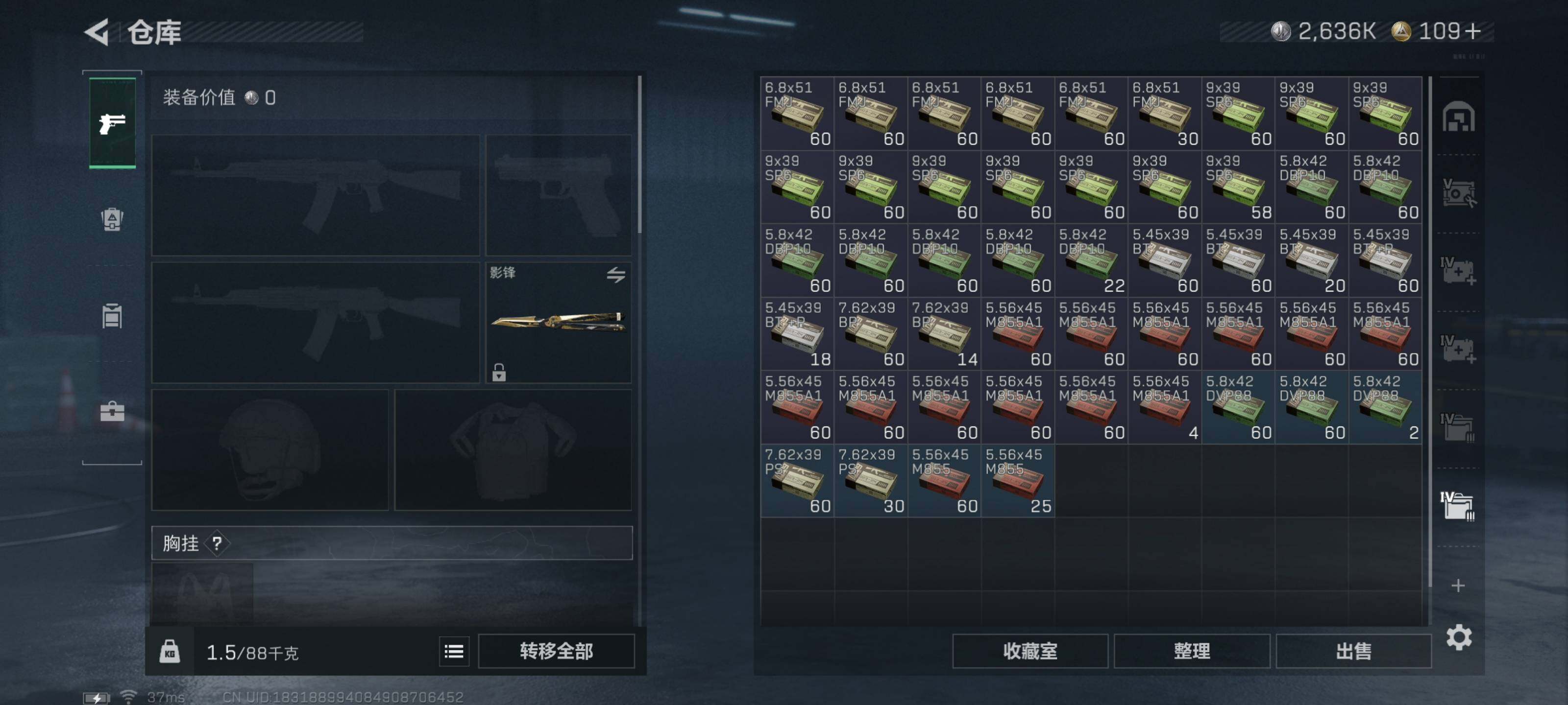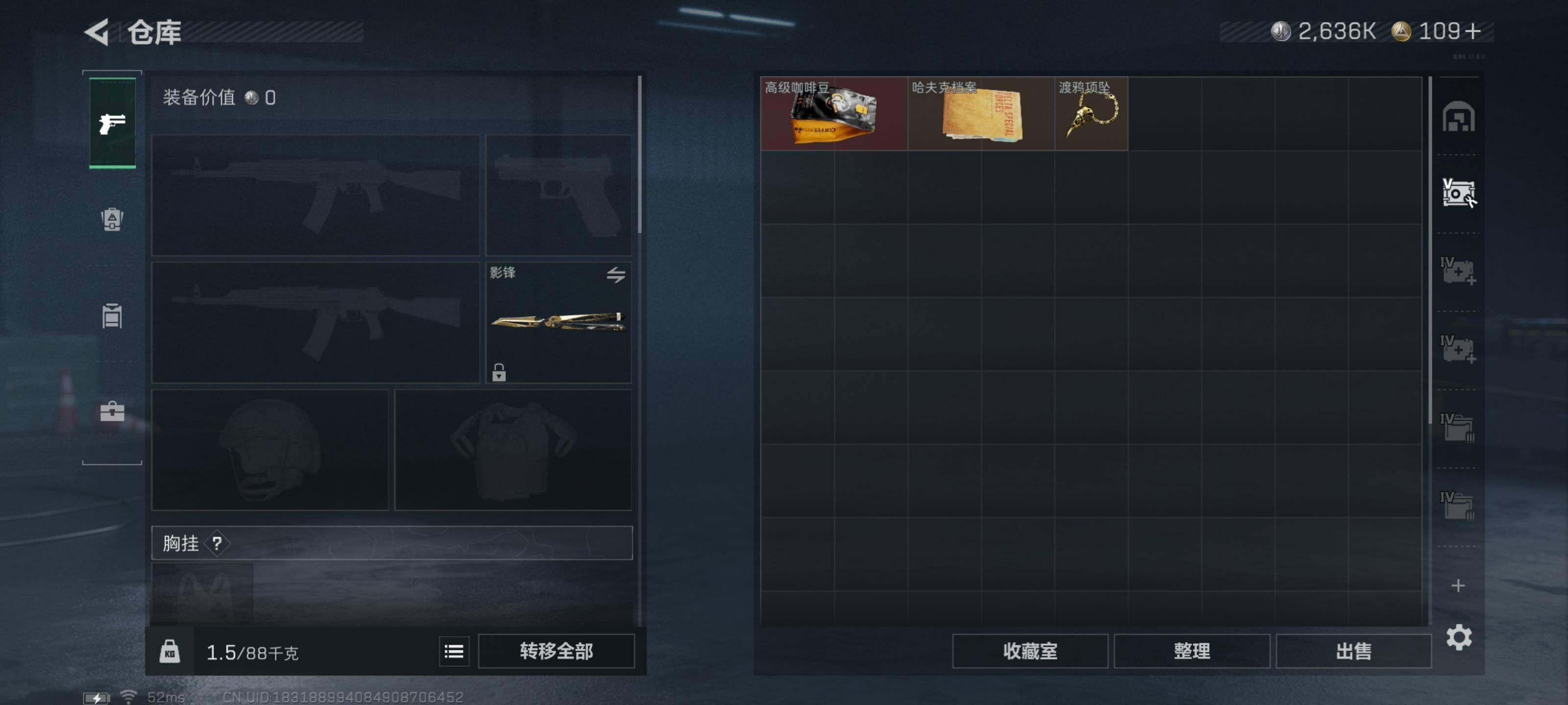 [16062969]典藏武器优品A【特价出售/店主推荐】199m总资产-2636k哈伏币-60烽火等级-黑鹰-50战场等级-将军