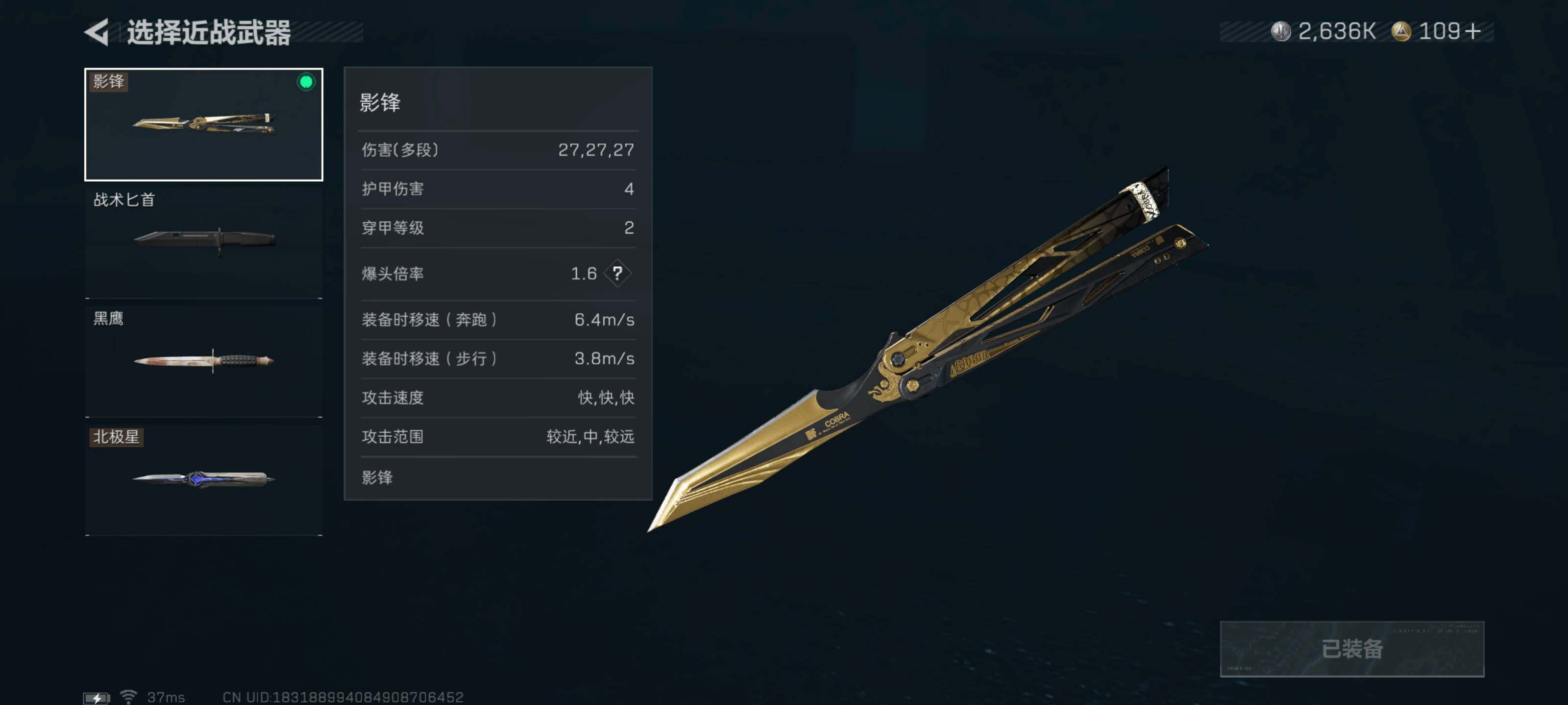 【近战皮肤】:近战-影锋,近战-北极星,近战-黑鹰