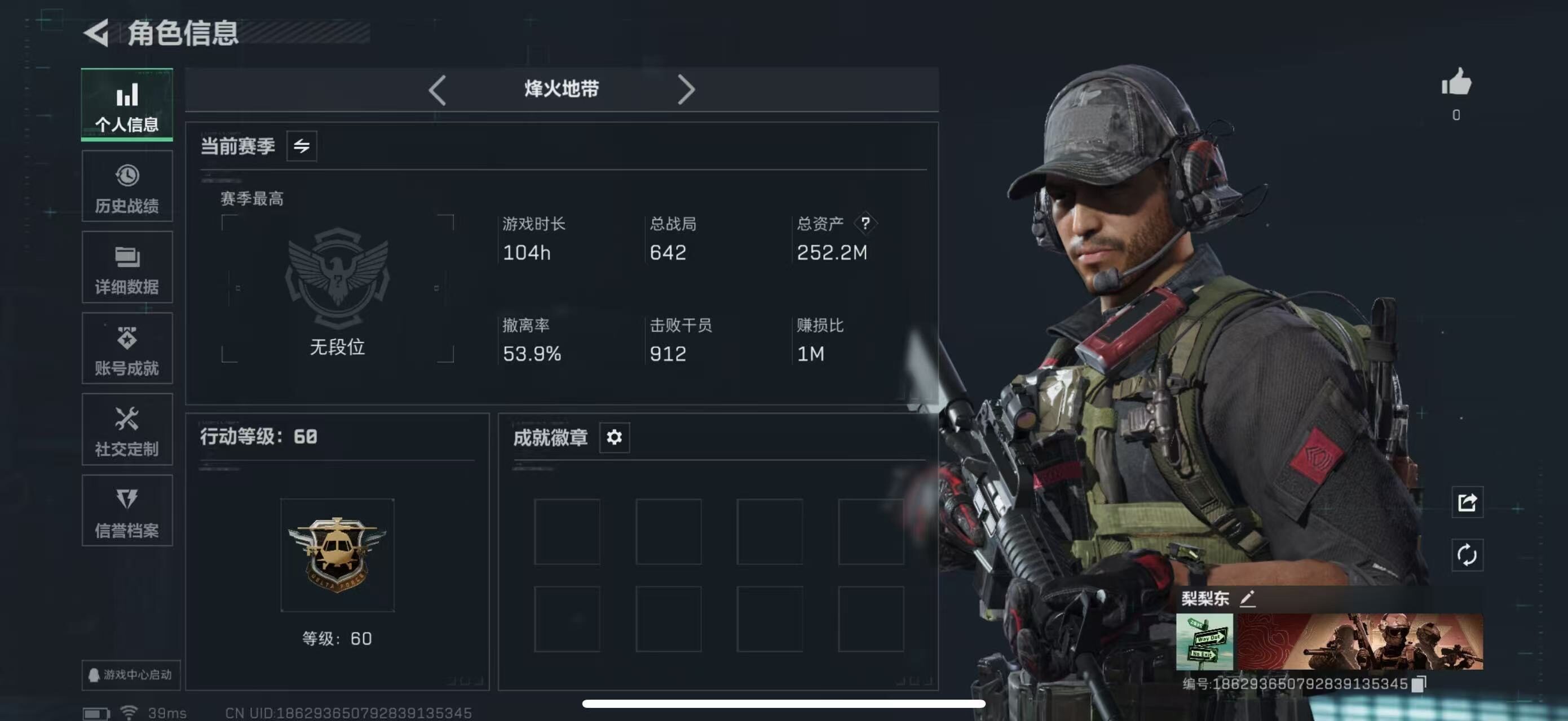 [16143430]【特价出售/店主推荐】252m总资产-128580k哈伏币-60烽火等级-青铜-1战场等级-无军衔