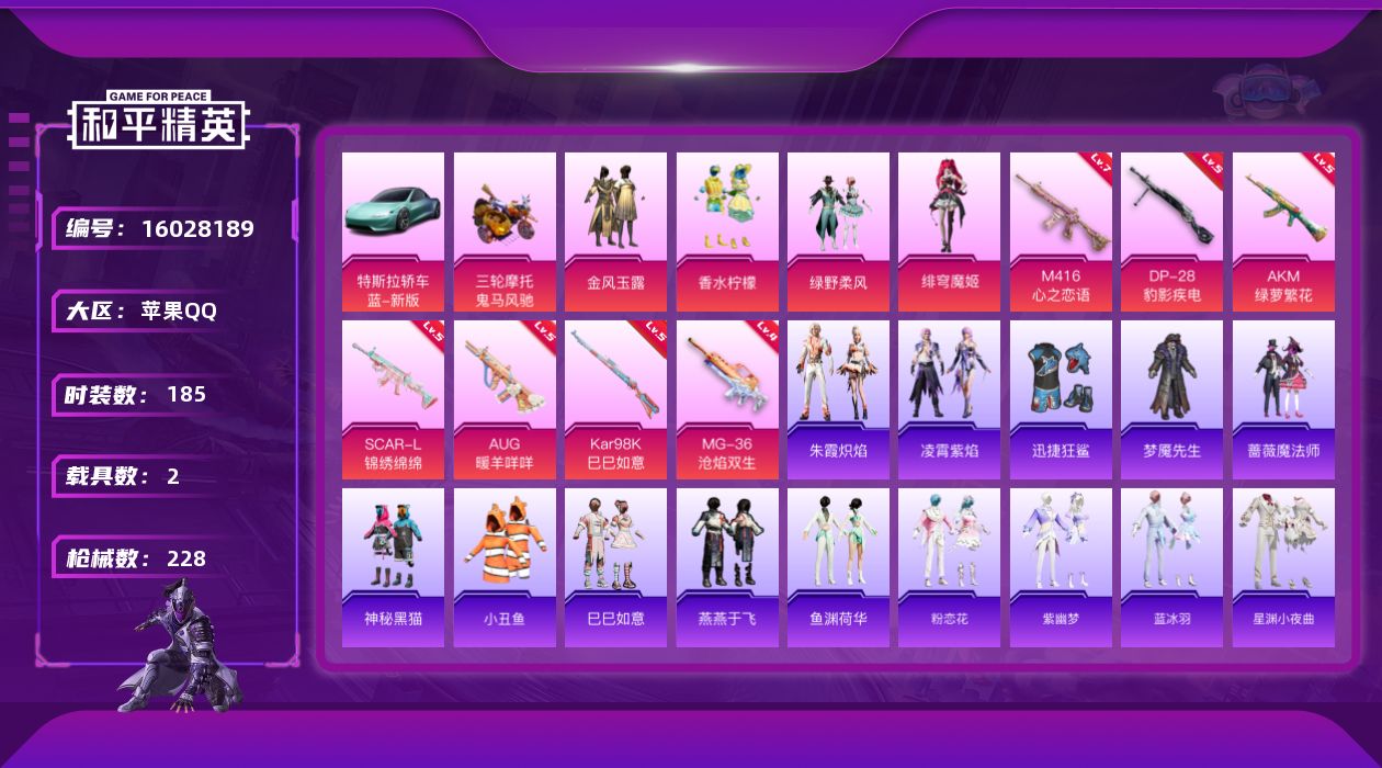 [16028189]【特价出售/店主推荐】苹果 手Q-4粉装-7特效枪-2载具-0粉色飞行器-68360热力值-7王牌印记-185套装-228枪皮
