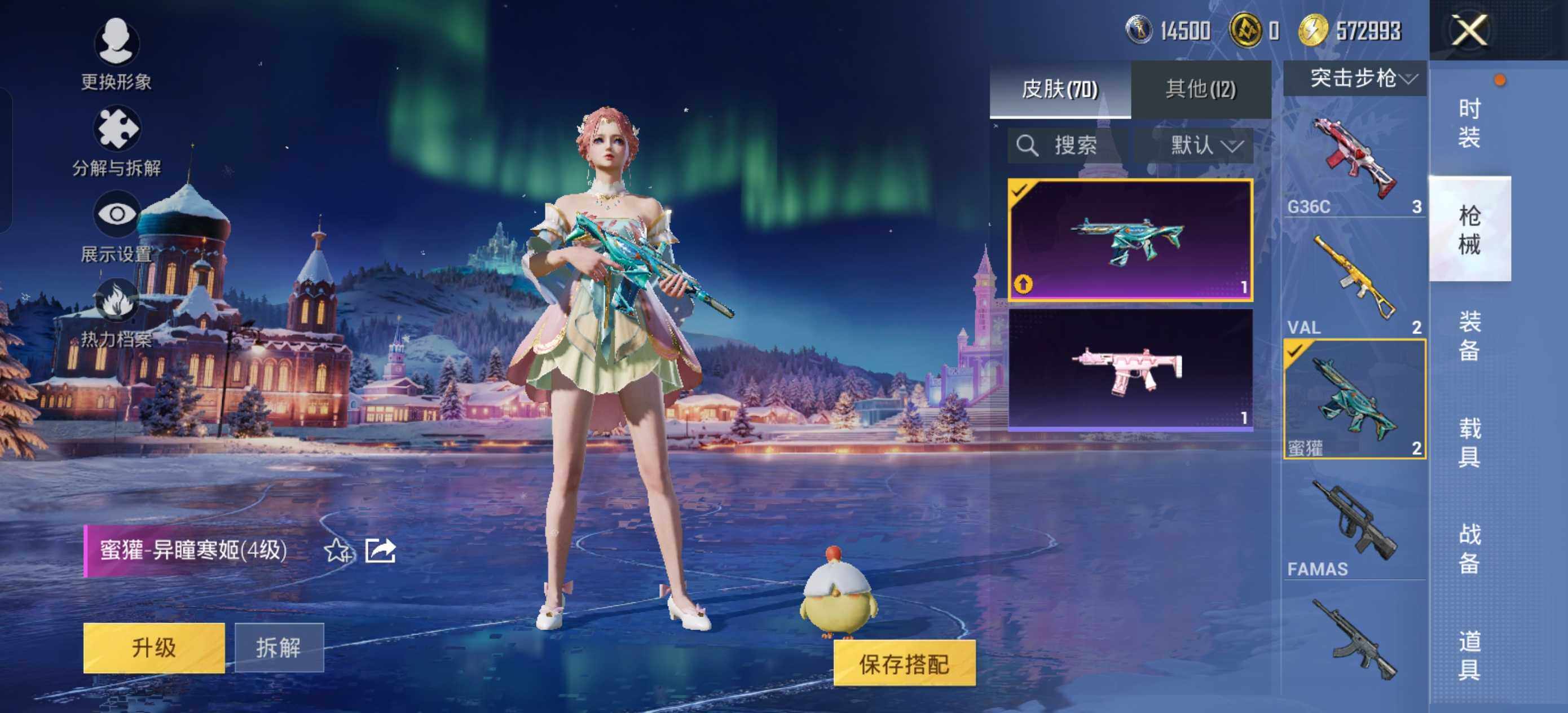 【粉色枪皮等级】:蜜獾-异瞳寒姬(四级),Kar98K-巳巳如意(一级),M24-翩跹演武(七级),DP-28-豹影疾电(二级)