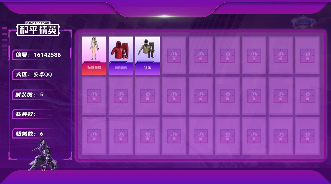 [16142586]【特价出售/店主推荐】安卓 手Q-1粉装-0特效枪-0载具-1粉色飞行器-2476热力值-2王牌印记-5套装-6枪皮 【粉色套装】:粉装-极意拳锋 【稀有枪皮】:VSS-星之彼岸 【其他套装】:套装-旭日情侣,套装-猛禽 【营地ID】:1031682238
