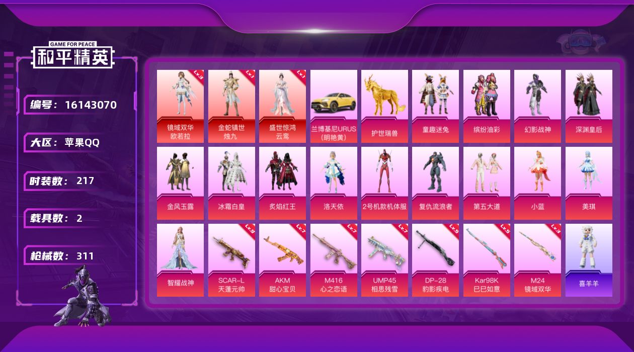 [16143070]9级sg天蓬元帅 可二次【特价出售/店主推荐】苹果 手Q-无敌战神框-3神装-14粉装-7特效枪-2载具-9粉色飞行器-111663热力值-20王牌印记-217套装-311枪皮