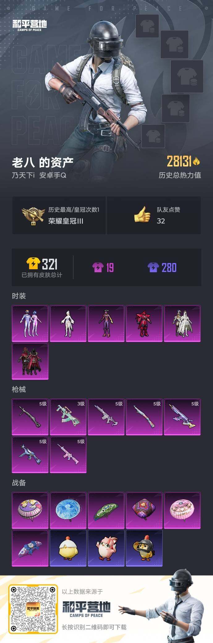 [16142756]【特价出售/店主推荐】安卓 手Q-6粉装-7特效枪-0载具-0粉色飞行器-28131热力值-1王牌印记-61套装-89枪皮