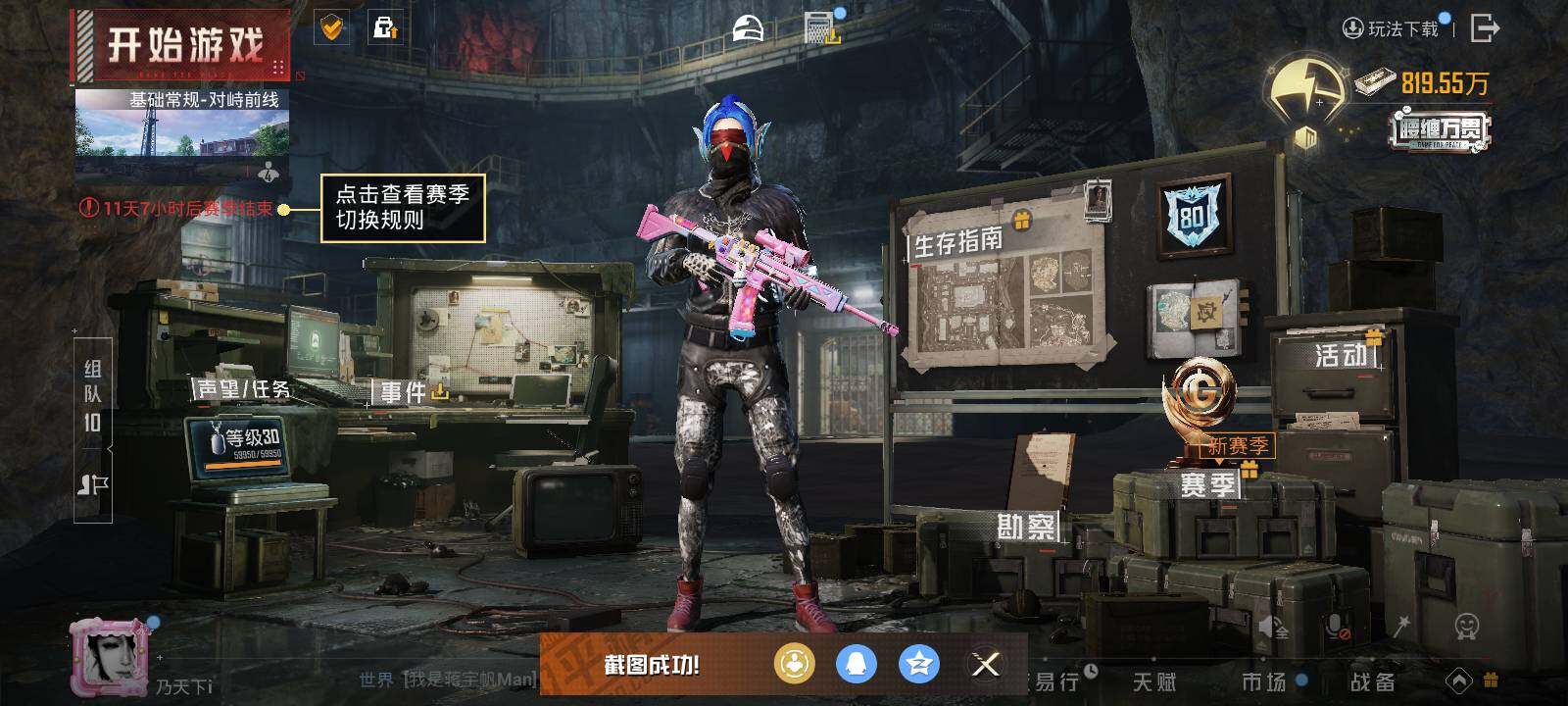 【粉色枪皮】:M416-电玩时刻,GROZA-无垠阁,M762-电糖天使,ARX-无垠阁,UMP45-量子极限,Kar98K-巳巳如意,DP-28-豹影疾电