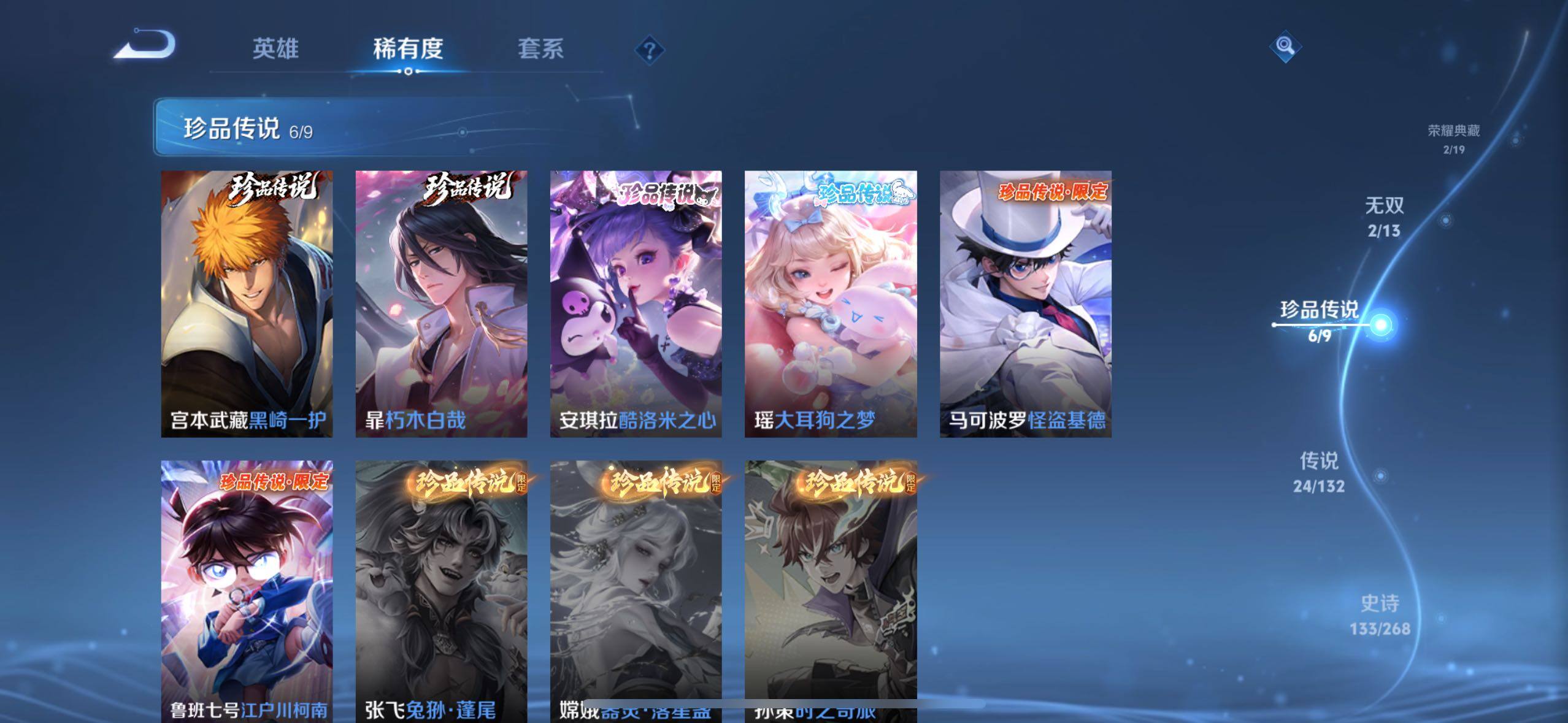 【珍品传说】:马可波罗怪盗基德,鲁班七号江户川柯南,瑶大耳狗之梦,安琪拉酷洛米之心,暃朽木白哉,宫本武藏黑崎一护