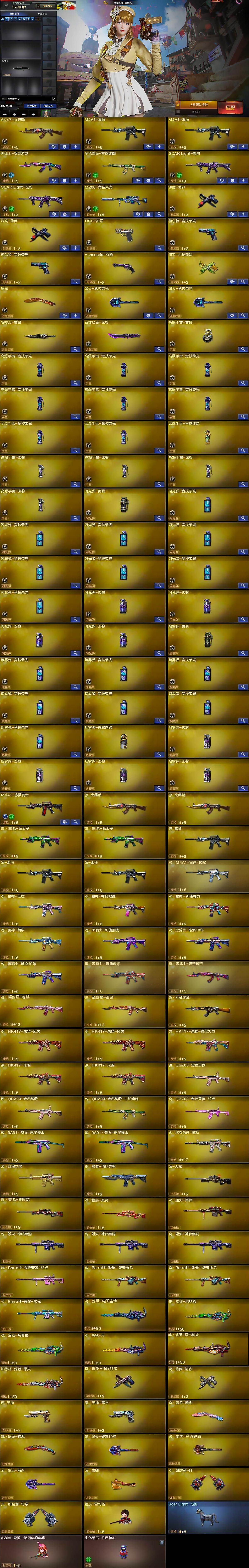 - [9854097]实名: 可修改 时装数: 196 枪械数: 65 战备数: 43 热门装扮: 宝贝奶油派,天使彩虹糖,橘柚倾心,暗夜魅影 稀有枪皮: M416风花雪月,GROZA-镜光银凌,Kar98K-巳巳如意,AUG-暖羊咩咩,MK14-甜梦熊击