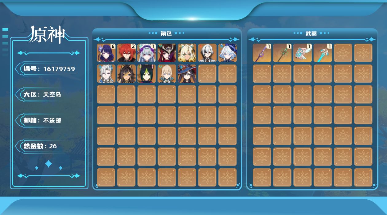 [16179759]57级/26黄/女主/13个五星角色/4个五星武器