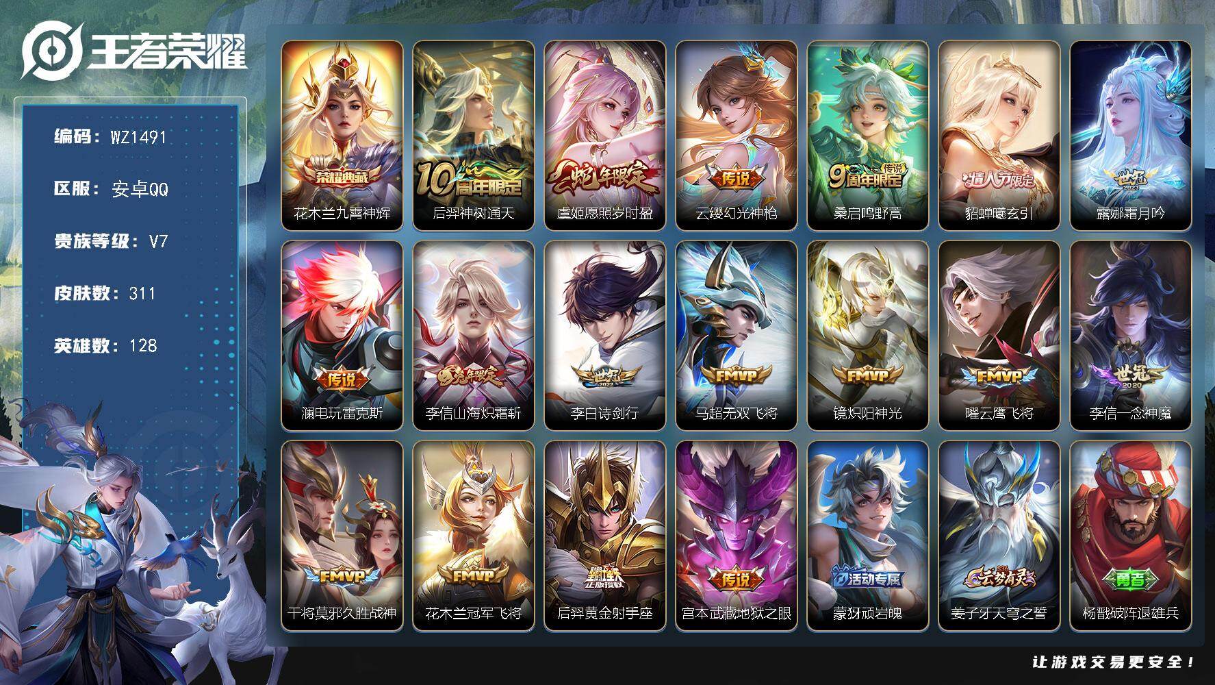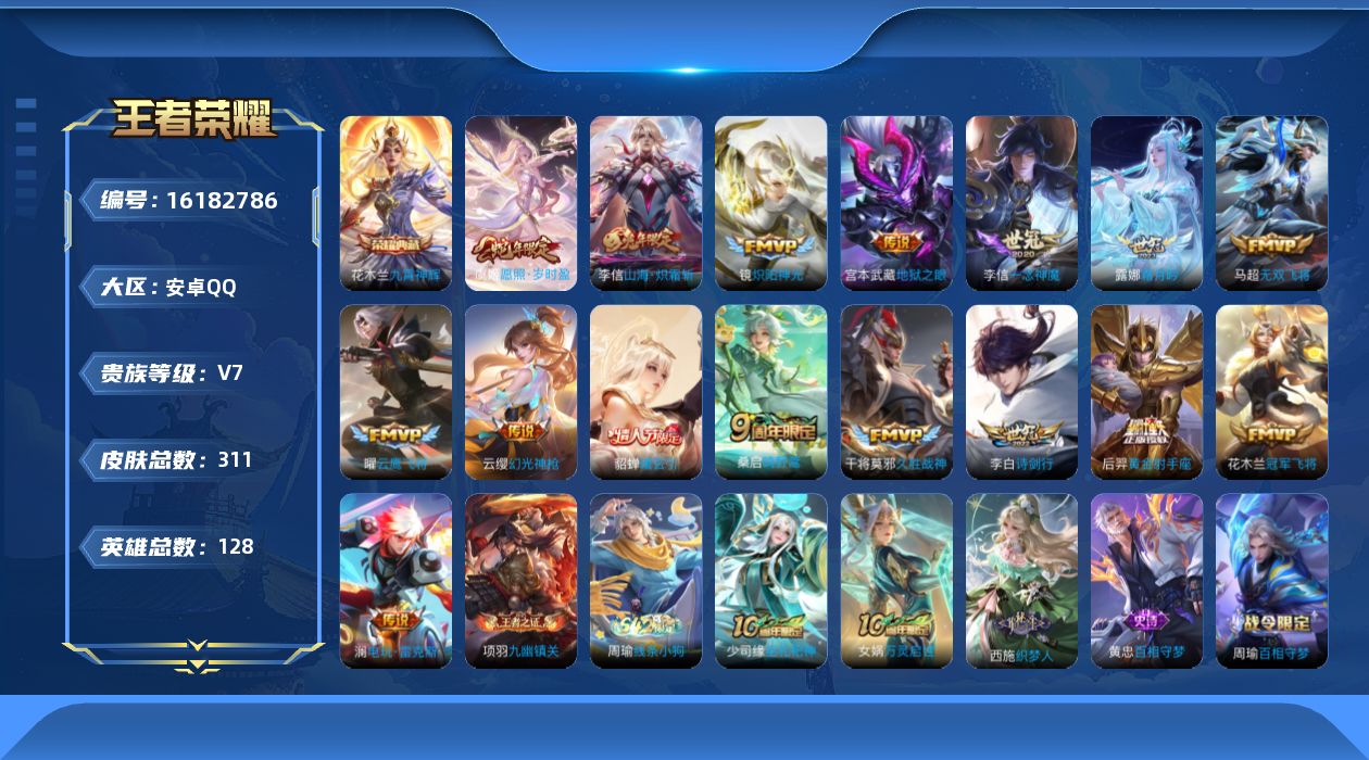 [16182786]16按键-安卓Q-V7-128英雄-311皮肤-1典藏皮肤-17传说-78史诗