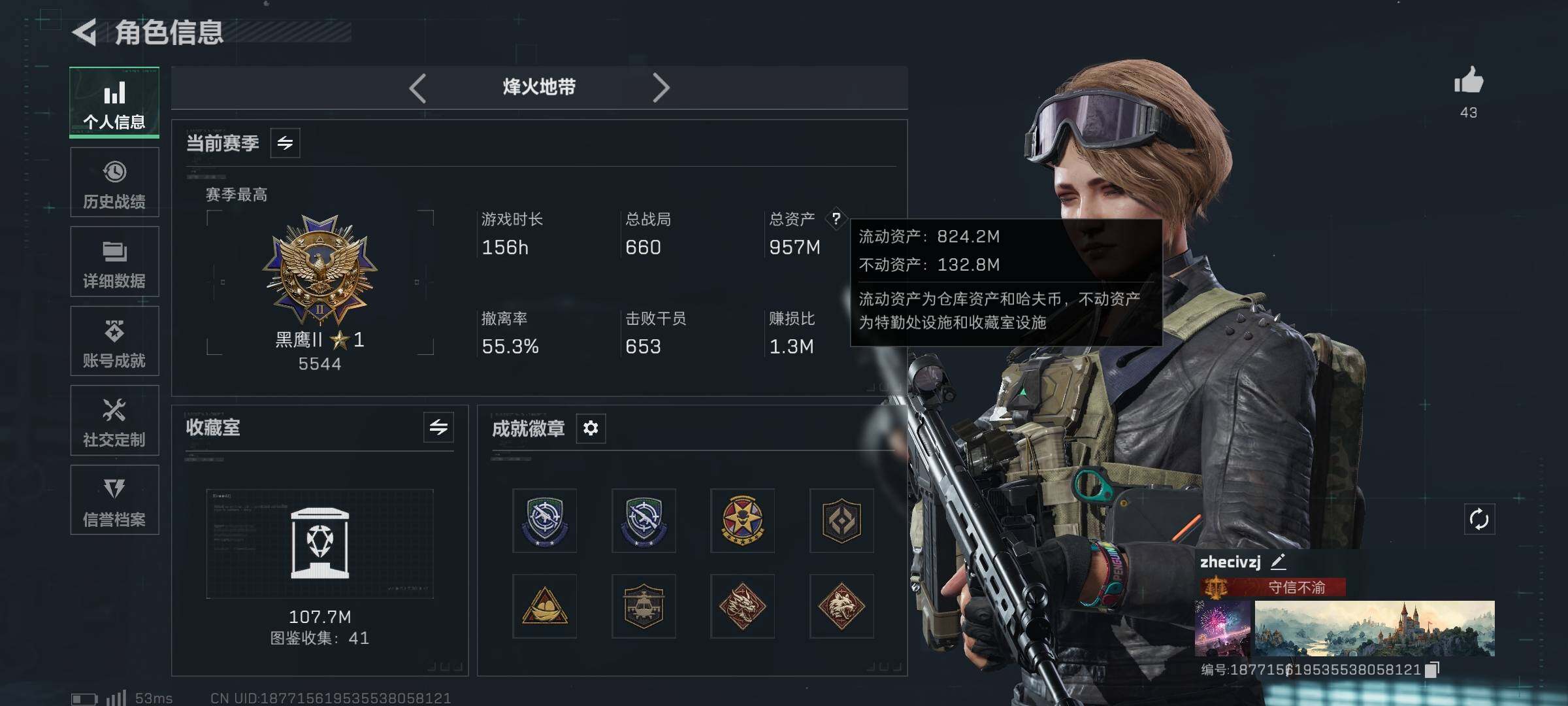 [16198550]可二次【特价出售/店主推荐】957m总资产-621466k哈伏币-60烽火等级-黑鹰-17战场等级-列兵