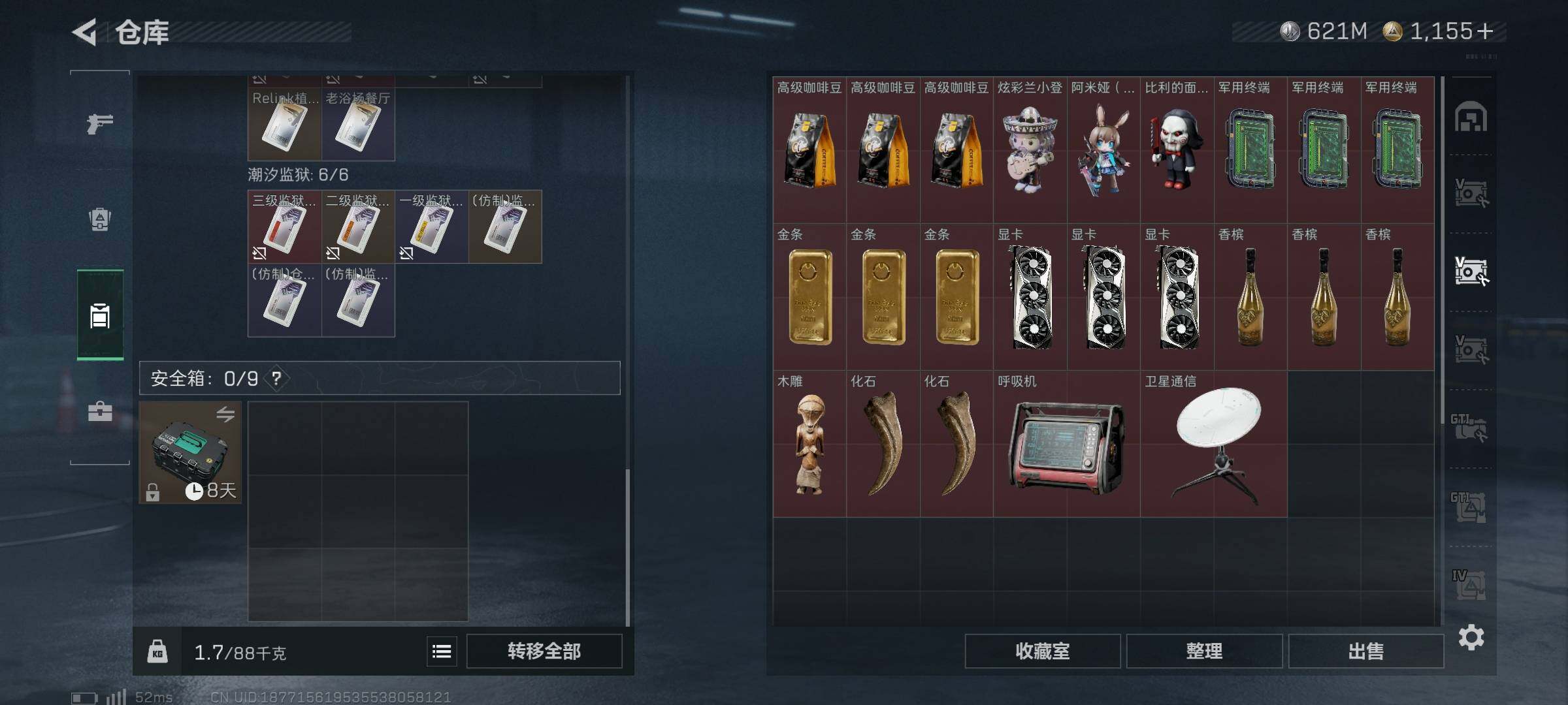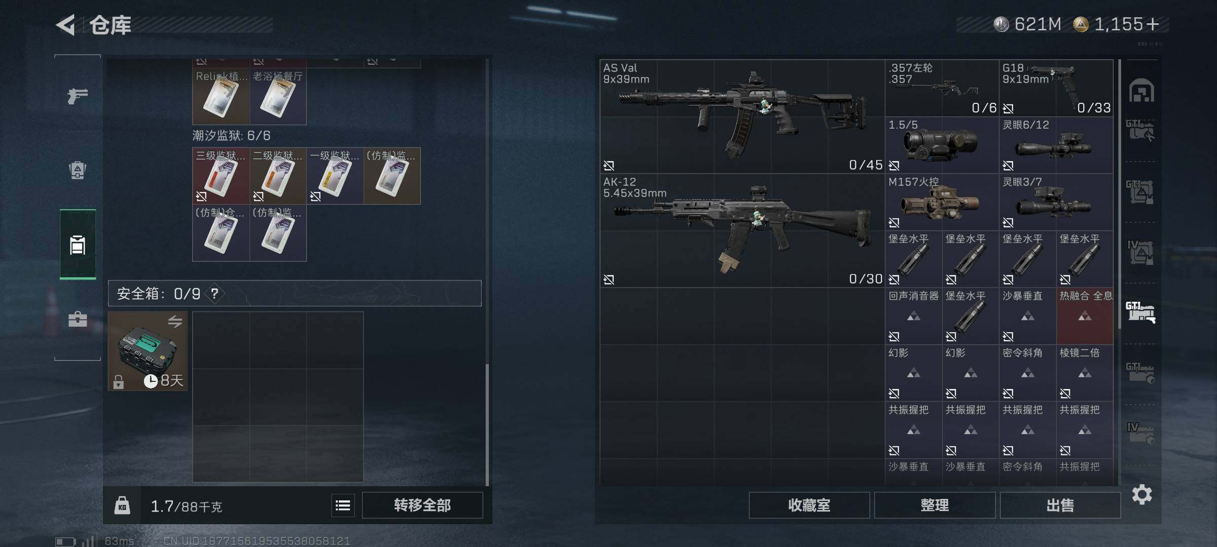 - [11252125]总资产:455.4M 10传说枪械 哈夫币:384K 可二次 可修改实名 优质装备:非洲之心 烽火地带段位:黄金 全面战场段位:上等兵 传说武器皮肤:M4A1突击步枪-阿米娅,CAR-15突击步枪-阿米娅,AWM狙击步枪-捞点薯条,腾龙突击步枪-捞点薯条,93R-捞点薯条,AK-12突击步枪-特斯拉线圈,SR-3M紧凑突击步枪-特斯拉线圈,UZI冲锋枪-特斯拉线圈,勇士冲锋枪-能天使-午夜邮差,725双管霰弹枪-送葬人-无题密令 史诗武器皮肤:PKM通用机枪-荒野求生,SR-3M紧凑突击步枪-荒野求生,SV-98狙击步枪-林中猎手,SVD狙击步枪-荒野求生,AS Val突击步枪-典狱官,M250通用机枪-囚徒,SV-98狙击步枪-囚徒,SCAR-H战斗步枪-囚徒,腾龙突击步枪-无垢,MP7冲锋枪-无垢,PSG-1射手步枪-无垢,M700狙击步枪-竞技风