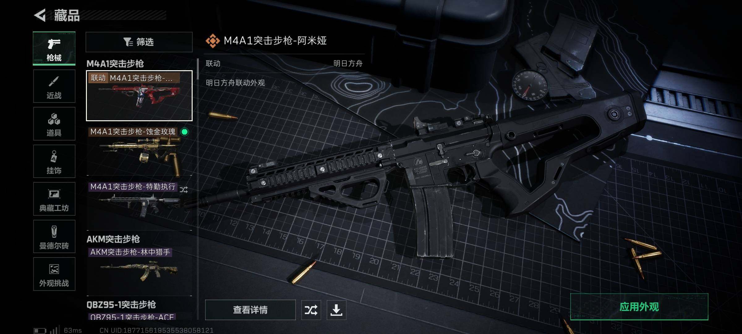 【传说外观】:M4A1突击步枪-蚀金玫瑰,M4A1突击步枪-阿米娅,ASh-12战斗步枪-鹅鸭杀,M16A4突击步枪-狩猎时刻,M7战斗步枪-维京,SG552突击步枪-运动员,AK-12突击步枪-夜鹰,AK-12突击步枪-特斯拉线圈,SCAR-H战斗步枪-铁艺苍穹,SCAR-H战斗步枪-启航,G3战斗步枪-狩猎时刻,CAR-15突击步枪-阿米娅,KC17突击步枪-电锯惊魂,Vector冲锋枪-狩猎时刻,Vector冲锋枪-能天使-午夜邮差,UZI冲锋枪-特斯拉线圈,SMG-45冲锋枪-骑士,SR-3M紧凑突击步枪-特斯拉线圈,勇士冲锋枪-能天使-午夜邮差,QCQ171冲锋枪-鹅鸭杀,725双管霰弹枪-送葬人-无题密令,M250通用机枪-骑士之心,QJB201轻机枪-鹅鸭杀,SR-25射手步枪-水墨云图,复合弓-黑·天际线
