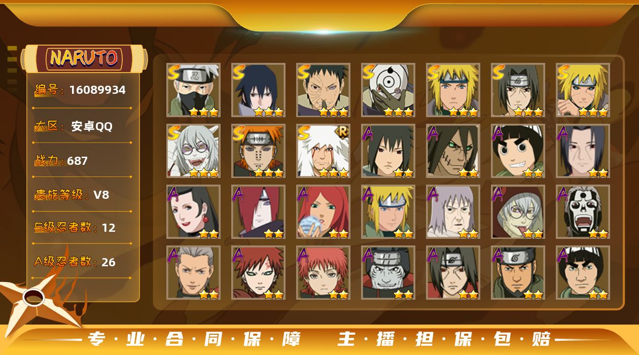 [16089934]v11有忍法帖 1125w战力 23S,40A,漂泊带土,佩恩,连体王者贵7,死门凯92片