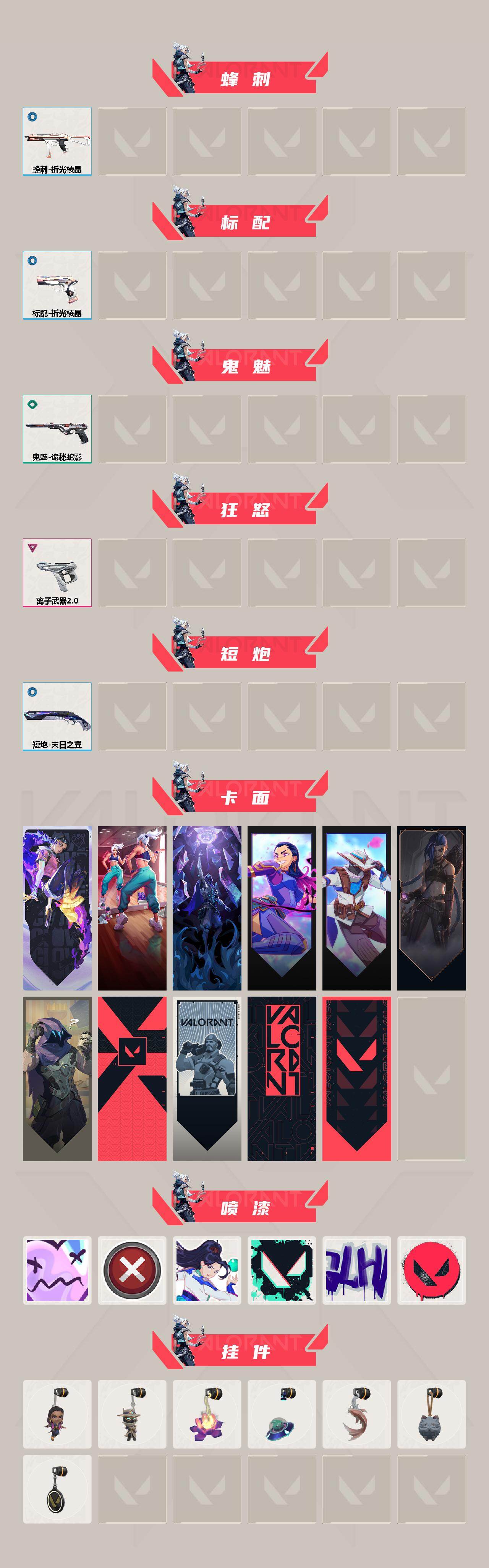 【卡面】:无畏契约:暮蝶 卡面,热舞环节 卡面,失而复得 卡面,无畏契约GO!第一卷:芮娜 卡面,无畏契约GO!第一卷:零 卡面,《双城之战》金克丝 卡面,黑影先生的咖啡! 卡面,代号红色 卡面,新兵报到 卡面,V契约 卡面,无畏契约 卡面