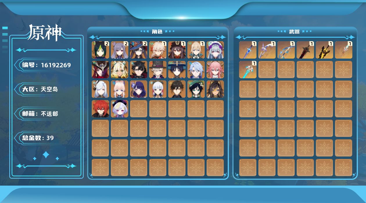 [16192269]58级/39黄/女主/23个五星角色/7个五星武器