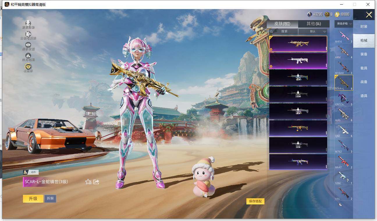 【粉色枪皮】:SCAR-L-纯梦嫁纱,SCAR-L-金蛇镇世,M416-电玩时刻,AUG-许七安,P90-魔童闹海 敖丙,Kar98K-巳巳如意,PKM-江南烟雨,烟雾弹-电雾迷城