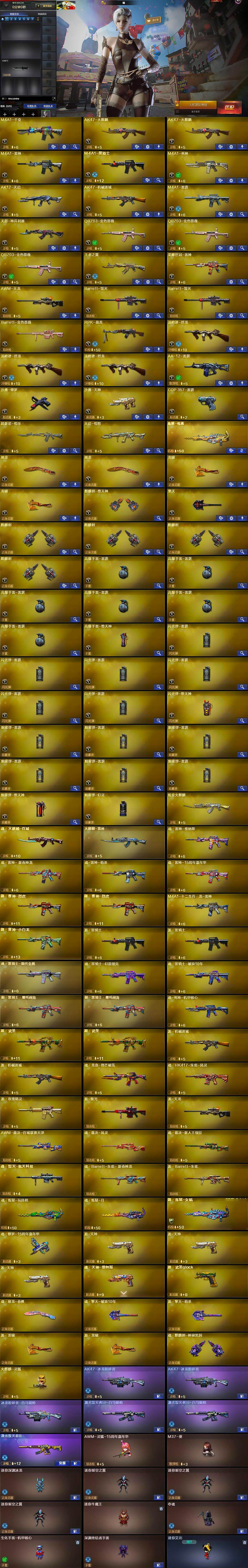 【人偶武器】:火麒麟-灵狐,AWM-灵狐-15周年嘉年华,M37-葵,迷你深渊冰龙,迷你裂空之翼*3,迷你牛魔王,夺魂,生化手雷-机甲核心,深渊终结者手雷,迷你艾比,灵狐娃娃手雷