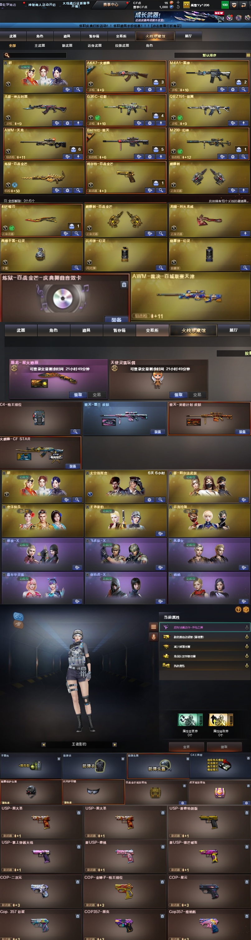 - [16337289]湖北一区-24V-2王者-0炫金 【热门武器】:QBZ03-街机,羊驼玩偶 【音效卡】:炼狱-百战金芒-庆典舞曲音效卡 【皮肤】:M4A1-再燃火线,轻型军用手斧-再燃火线 【角色】:关小雨,乔伊教练,初恋灵狐,芳心审判者,潘多拉-甜心教官,甜心偶像,雪莉杨-摸金校尉 【人偶武器】:AWM-灵狐-15周年嘉年华,迷你裂空之翼,迷你波特博士,迷你曼提柯尔,夺魂,迷你牛牛,迷你火种 【挑战大师】:神圣爆裂者III,冰龙粉碎者-白马银枪,激光毁灭者III,机甲撕裂者III,试炼破坏者III,KAC-圣炎切割者III,神圣爆裂者-末日III 【英雄级武器】:M4A1-千变,AK47-火麒麟,M4A1-黑龙,M4A1-雷神,AK12-天启,QBZ03-天罚*2,九霄圣角,Barrett-极光,炼狱-百战金芒,沙鹰-天神,USP-神工天巧,屠龙-动感闪耀,麒麟刺-百战金芒 【道具】:CFS限定背包,百战金芒炫彩背包,金狐背包,女皇终结者-魔龙之吻,绿色巨人,灵魂忍者,妖姬,迷雾幽灵,夺命之镰,防化服*2,流光-鎏金之域,语音特效-盛典烟火,萌萌小葵表情,防弹头盔*2,防弹衣*2,C4工具钳*2,手雷包*2 【特殊枪械】: