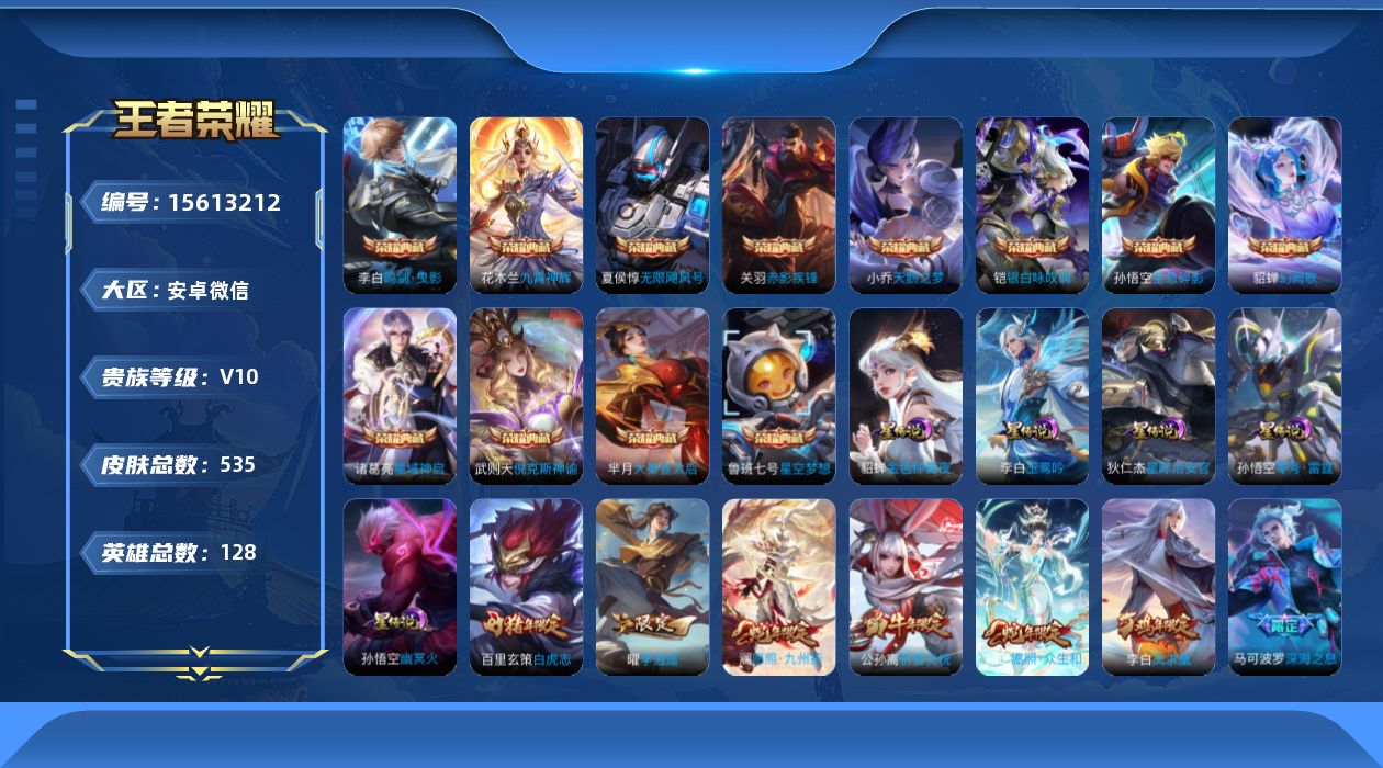 [15613212]安卓WX-连体和平螳螂木乃伊1车-V10-128英雄-535皮肤-12典藏皮肤-1典藏英雄-83传说-194史诗