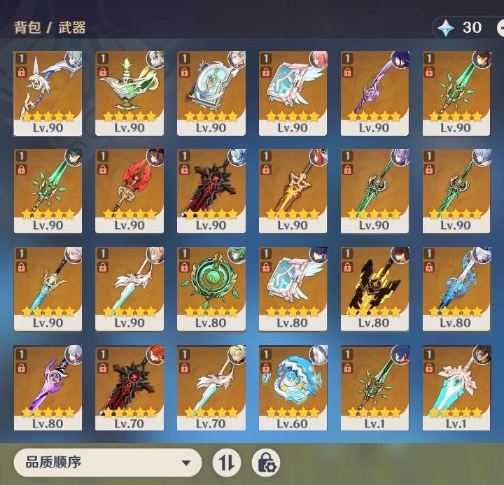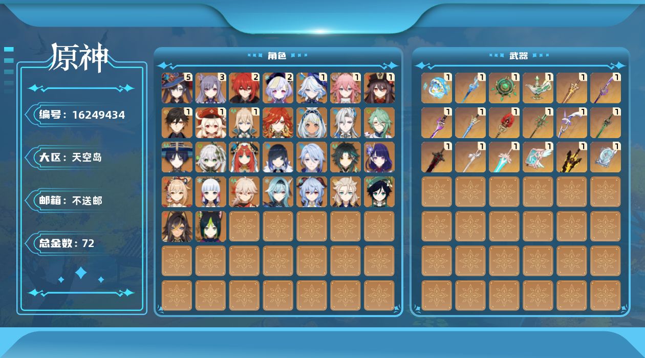 [16249434]60级/72黄/男主/30个五星角色/24个五星武器