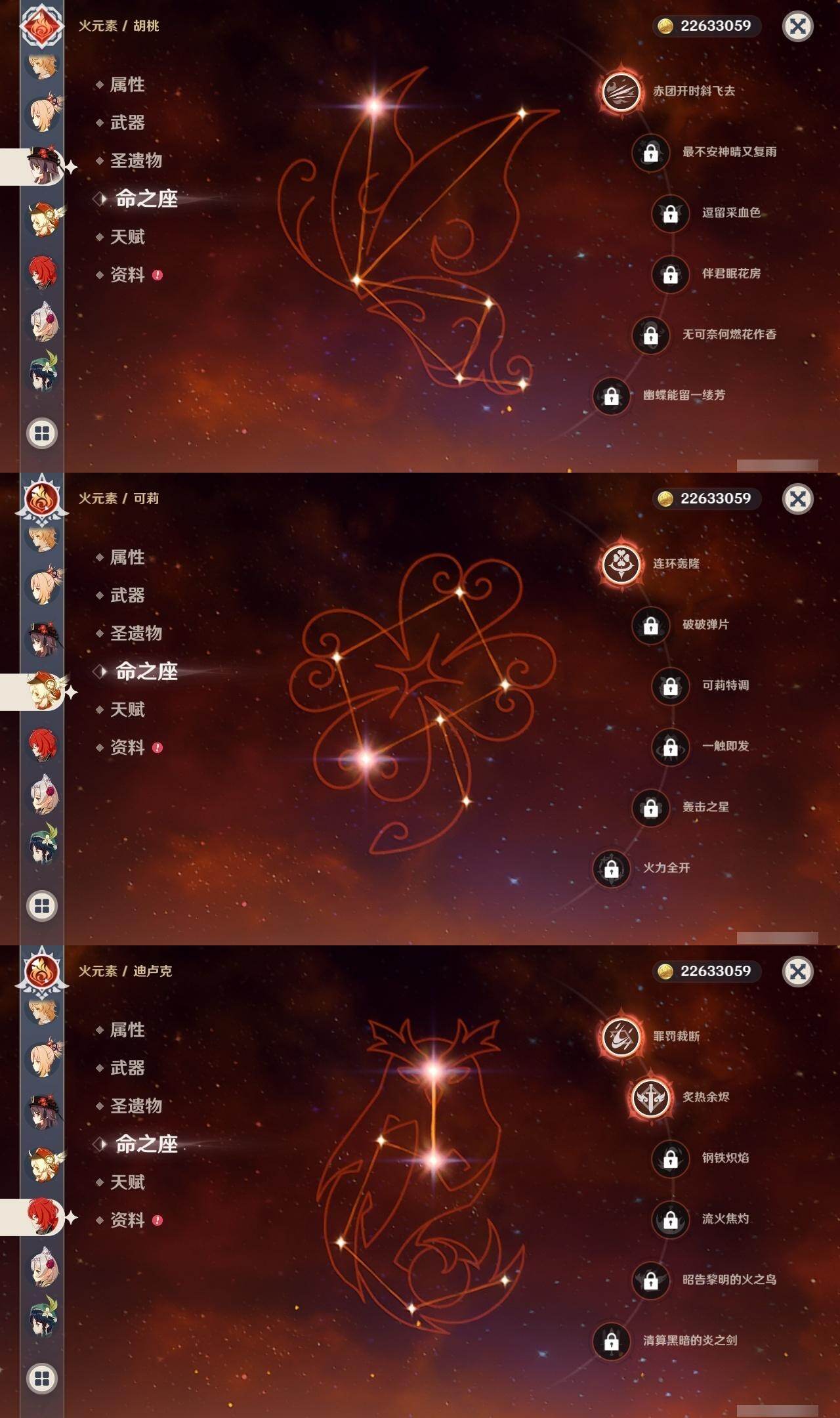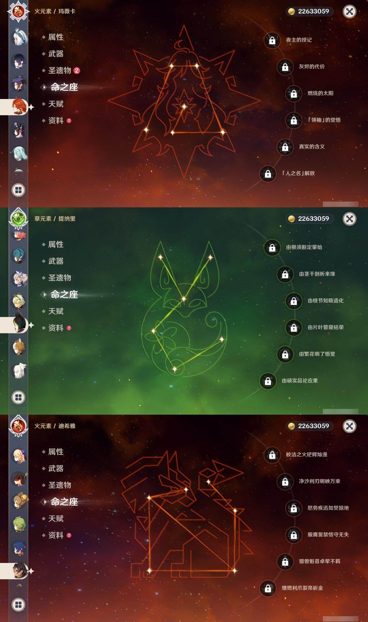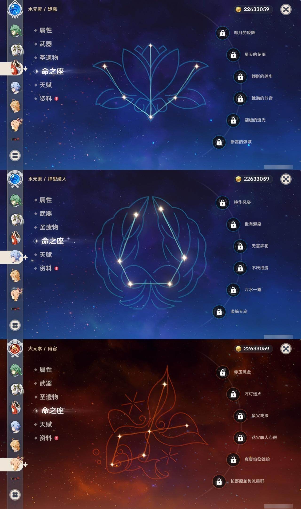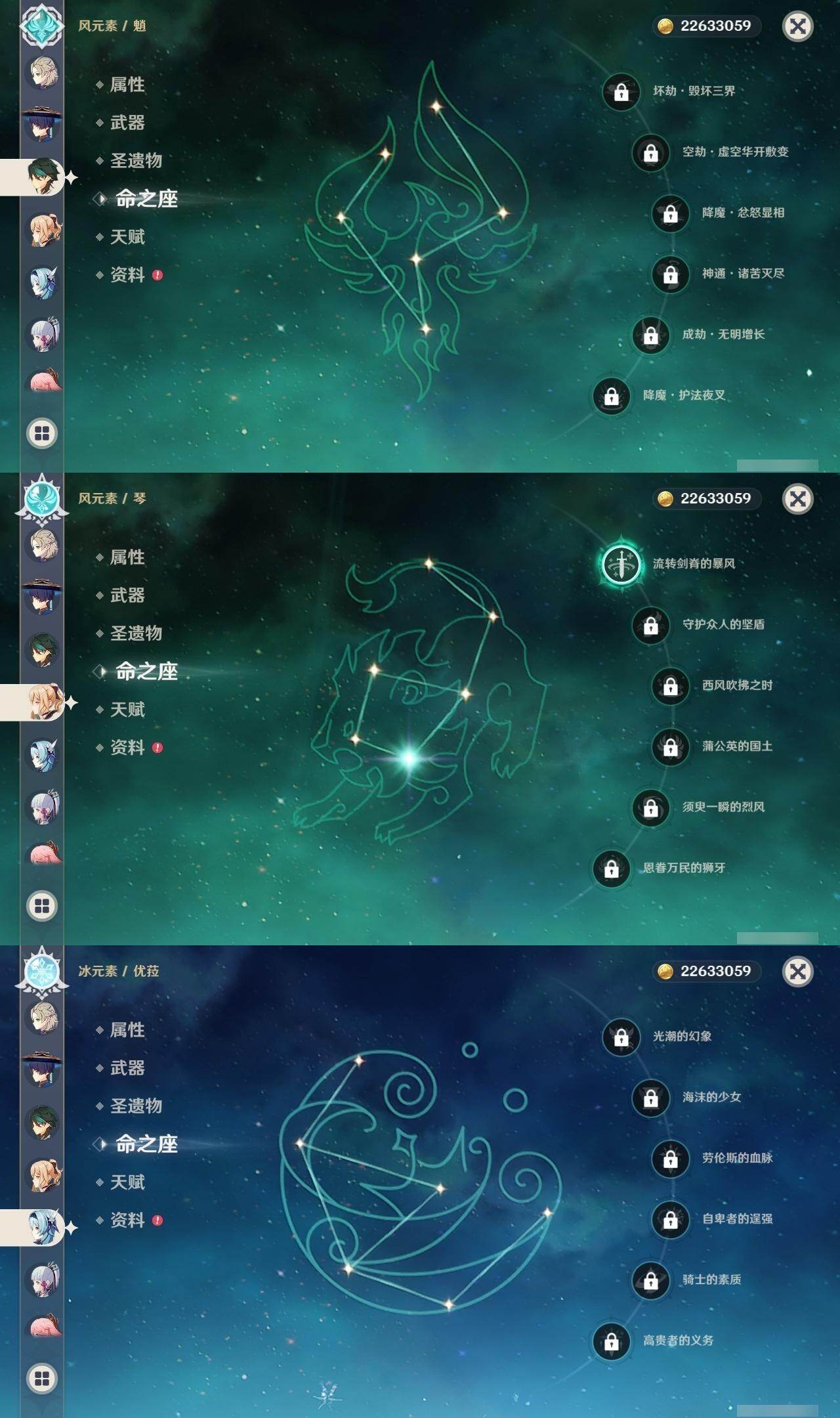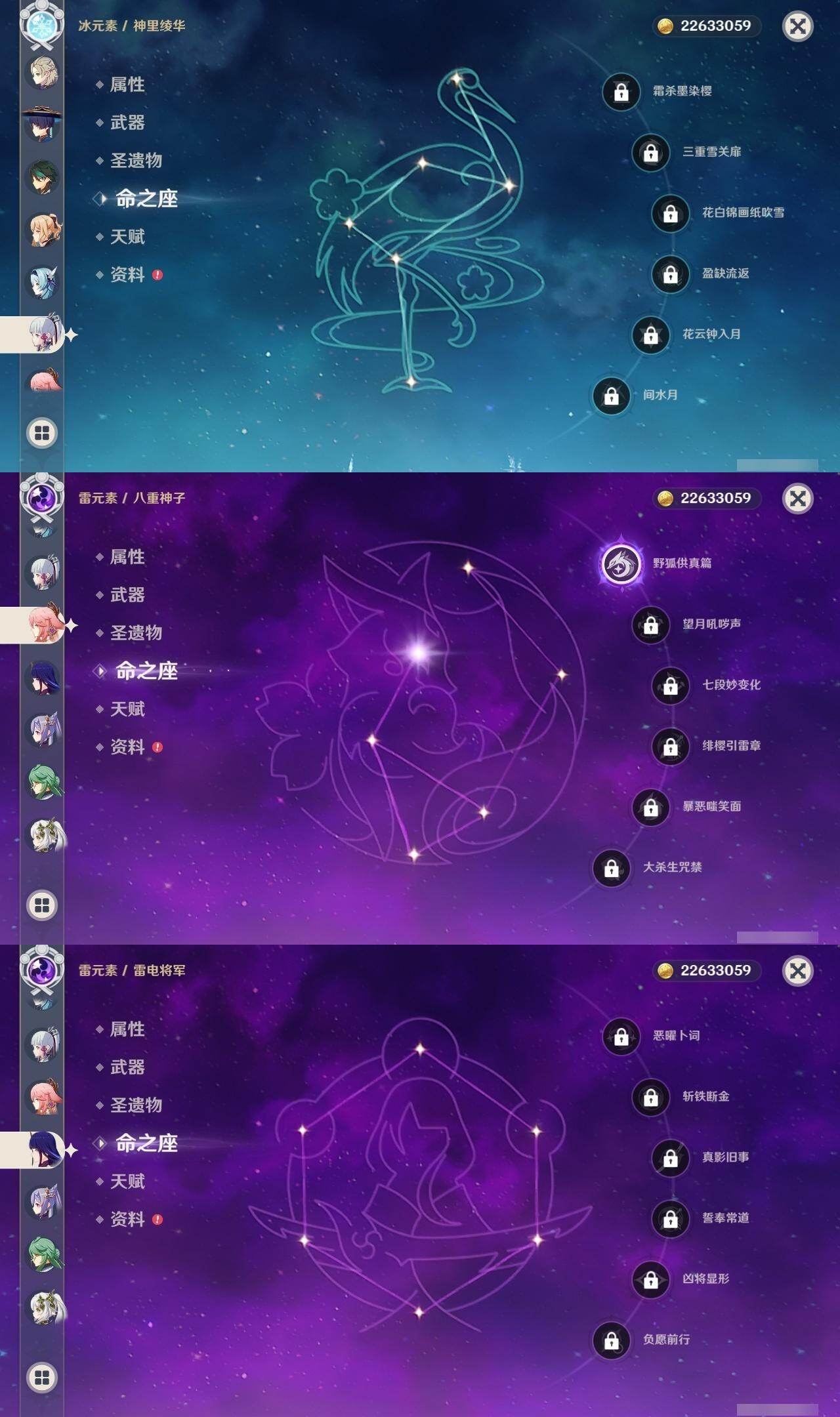1命芙宁娜,0命那维莱特,0命白术,0命迪希雅,0命流浪者,0命纳西妲,0命妮露,0命提纳里,0命夜兰,0命神里绫人,1命八重神子,0命优菈,0命雷电将军,0命枫原万叶,0命神里绫华,1命钟离,1命胡桃,0命甘雨,0命魈,0命宵宫,0命温迪,1命可莉,0命阿贝多,3命刻晴,2命七七,1命琴,5命莫娜,2命迪卢克,0命玛拉妮,0命玛薇卡,精1静水流涌之辉,精1碧落之珑,精1千夜浮梦,精1圣显之钥,精1薙草之稻光,精1雾切之回光,精1苍古自由之誓,精1无工之剑,精1护摩之杖,精1磐岩结绿,精1四风原典,精1和璞鸢,精1阿莫斯之弓,精1天空之卷,精1风鹰剑,精1狼的末路,精1天空之傲,精1冲浪时光