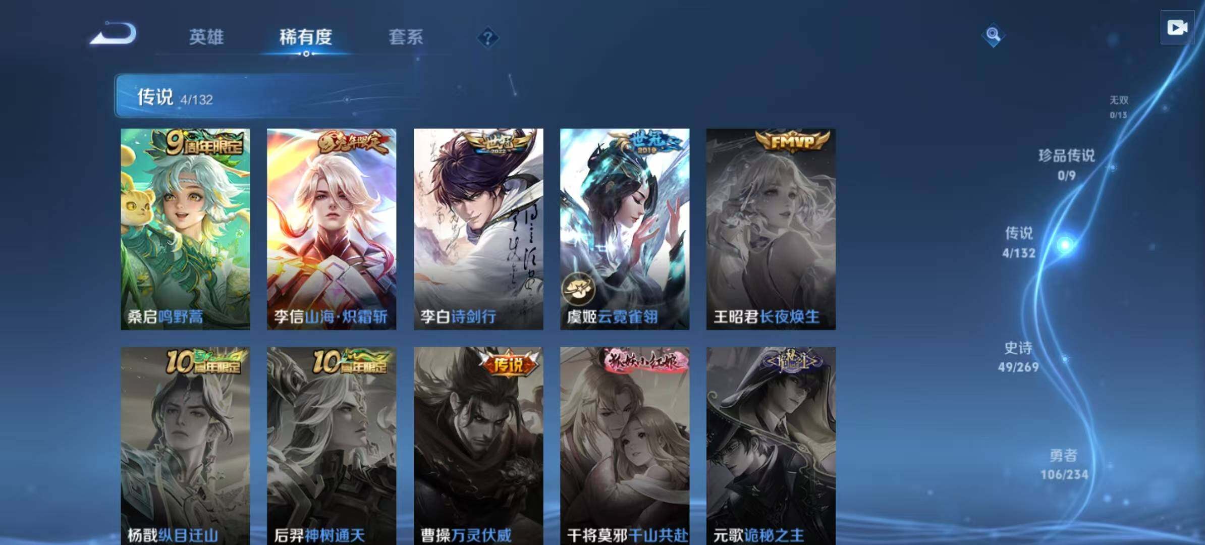 【传说皮肤】:桑启鸣野蒿,李信山海炽霜斩,李白诗剑行,虞姬云霓雀翎