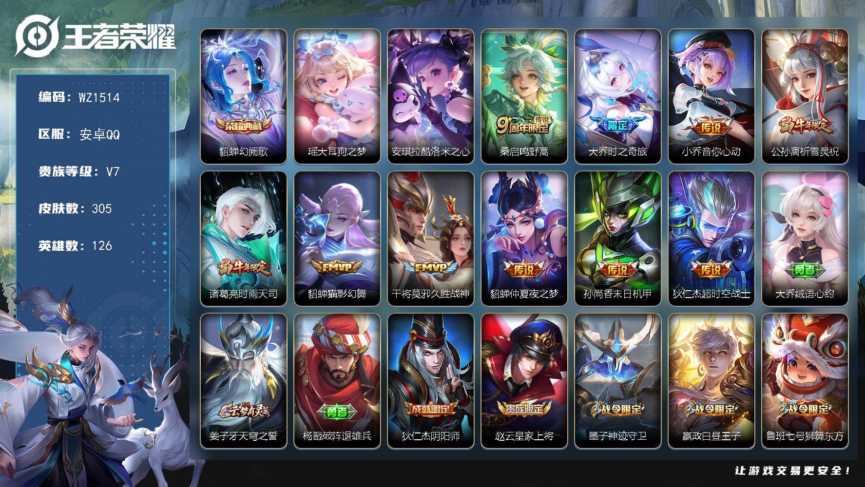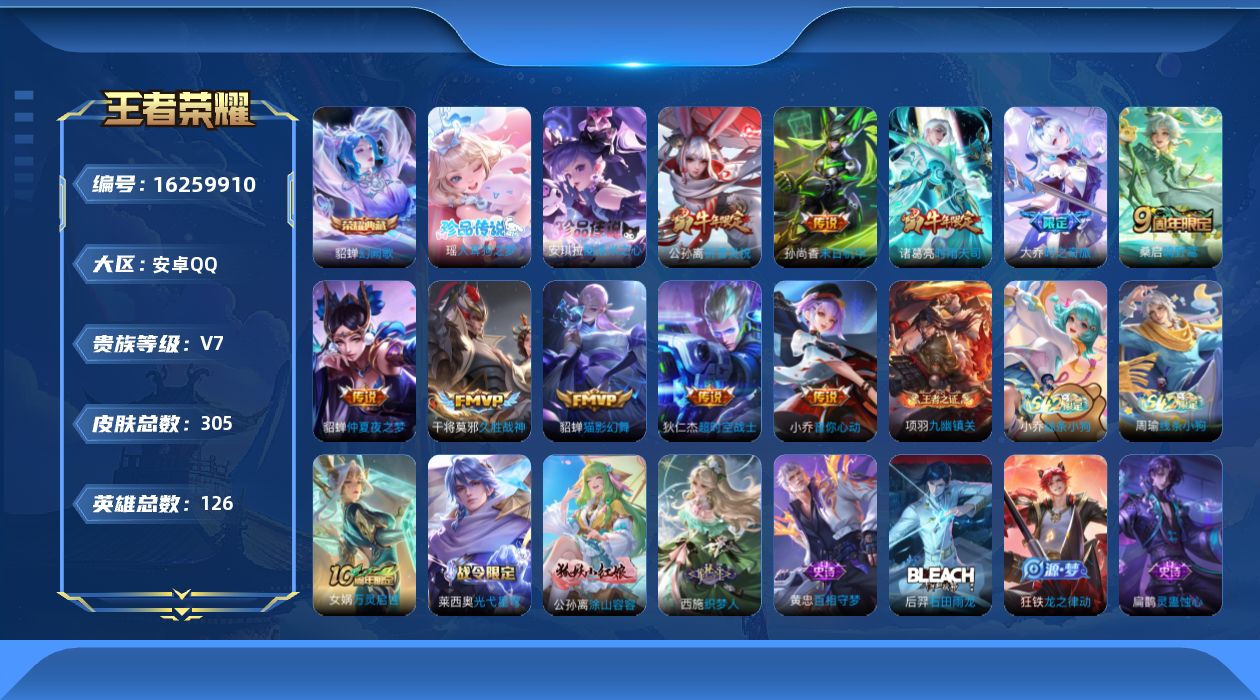 [16259910]安卓Q-V7-126英雄-305皮肤-1典藏皮肤-2珍品传说-10传说-91史诗