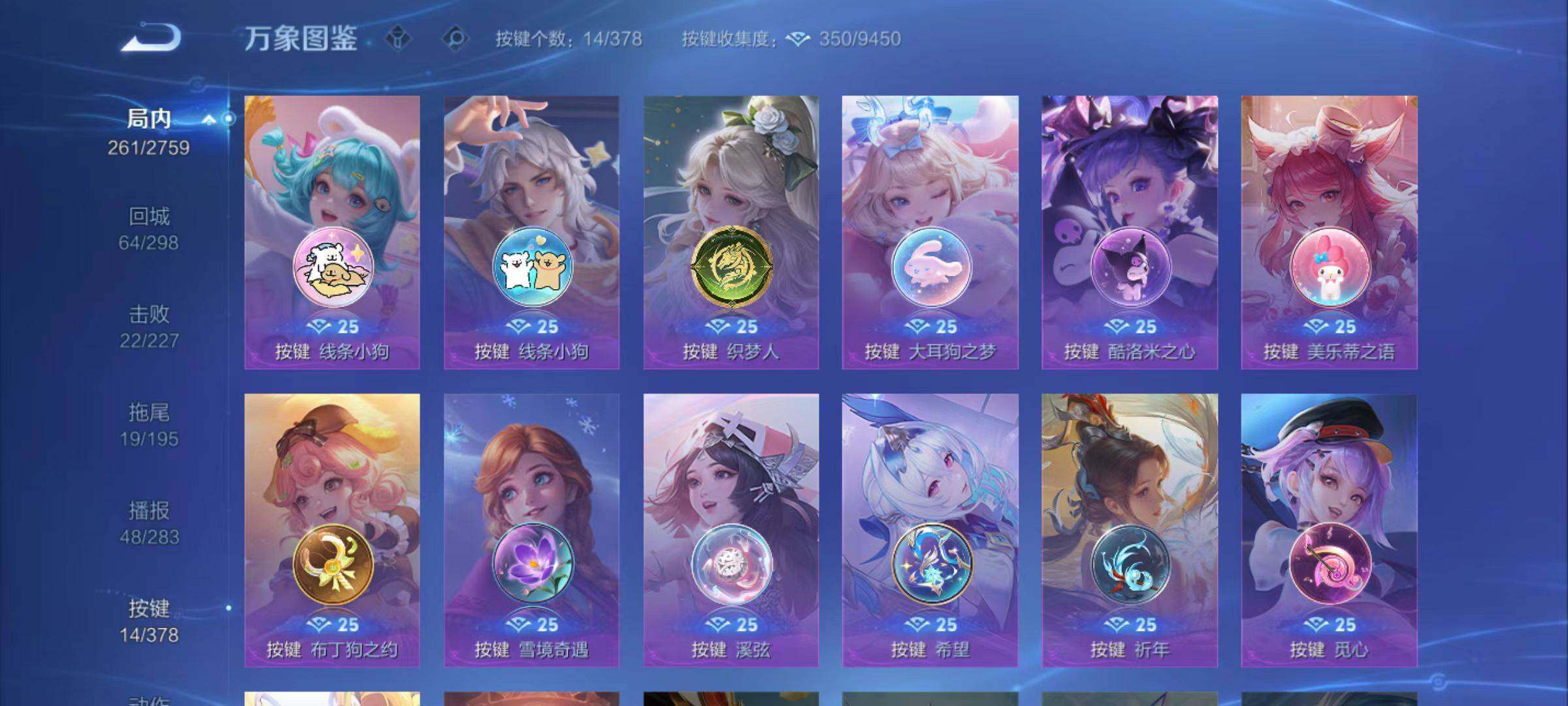 - [14896813]【套装】:2025全球冠军赛套装,ORA x 颗秒套装,多弥尔的复仇套装,滋滋X特攻队套装,掠影//2.0套装 【英雄】:幻棱,炼狱,维斯,暮蝶,钛狐,壹决,铁臂,捷风,雷兹,幽影,不死鸟,贤者,猎枭,蝰蛇,零,芮娜,奇乐,尚勃勒,霓虹,斯凯,夜露,星礈,K/O,海神,黑梦,钢锁 【近战武器】:近战武器-2025全球冠军赛 蝴蝶刀,近战武器-ORA x 颗秒 军刀,近战武器-多弥尔之裁,近战武器-魔术火花,近战武器-嘟昂嘟昂超弹力水球拳套,近战武器-影钩,近战武器-神罚//2.0 战锤,近战武器-日耀风暴 遗器,近战武器-阿特拉斯指挥部 甩棍,近战武器-星际猎兵 短剑,近战武器-魔术火花 【狂徒】:狂徒-超时空卫队,狂徒-2025全球冠军赛,狂徒-混沌序曲,狂徒-噬影者,狂徒-RGX 11z Pro,狂徒-光荣异象,狂徒-滋滋X特攻队,狂徒-多弥尔的复仇,狂徒-ORA x 颗秒,狂徒-盖亚的复仇,狂徒-奇幻朋克//3.0 【幻影】:幻影-末日泡泡,幻影-ORA x 颗秒,幻影-侦察力量,幻影-异鳞魔蛇,幻影-掠影//2.0,幻影-奇幻朋克//3.0 【戍卫】:戍卫-多弥尔的复仇,戍卫-天界神兵 【冥驹】:冥驹-滋滋X特攻队,冥驹-ORA x 颗秒,冥驹-堕天遗武,冥驹-起源 【飞将】:飞将-天界神兵 【莽侠】:莽侠-RGX 11z Pro//3.0 【奥丁】:奥丁-多弥尔的复仇,奥丁-掠影//2.0 【判官】:判官-千灵华绽,判官-全息波普 【雄鹿】:雄鹿-起源 【骇灵】:骇灵-神中神罚,骇灵-掠影//2.0,骇灵-无限竞技 【标配】:标配-电音光谱,标配-多弥尔的复仇,标配-电音光谱 【正义】:正义-奇点,正义-ORA x 颗秒 【鬼魅】:鬼魅-超时空卫队,鬼魅-耀鳞威龙,鬼魅-掠影//2.0 【狂怒】:狂怒-神中神罚 【卡面】:精灵大战 卡面,红鳞松叶 卡面,无畏契约GO!第一卷:芮娜 卡面,无畏契约GO!第一卷:零 卡面,代号红色 卡面,新兵报到 卡面,V契约 卡面,无畏契约 卡面 【喷漆】:买装还是存钱 喷漆,红鳞 喷漆,胜利属于无畏契约 喷漆,GLHF 喷漆,无畏契约 喷漆 【挂饰】:无畏契约GO!第一卷 零 挂饰,暗藏猫腻 挂饰,薰衣草之心 挂饰,天外飞客 挂饰,红鳞松叶 挂饰,无畏契约 纪念币 挂饰