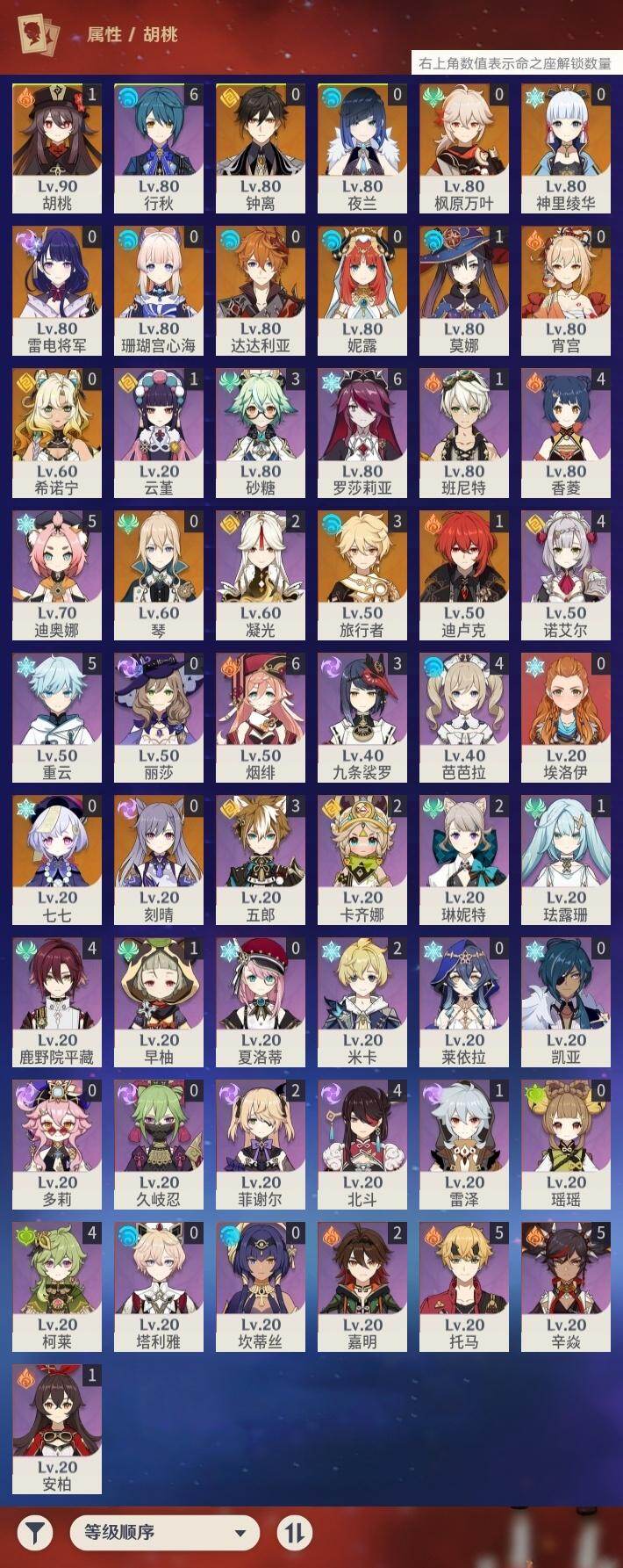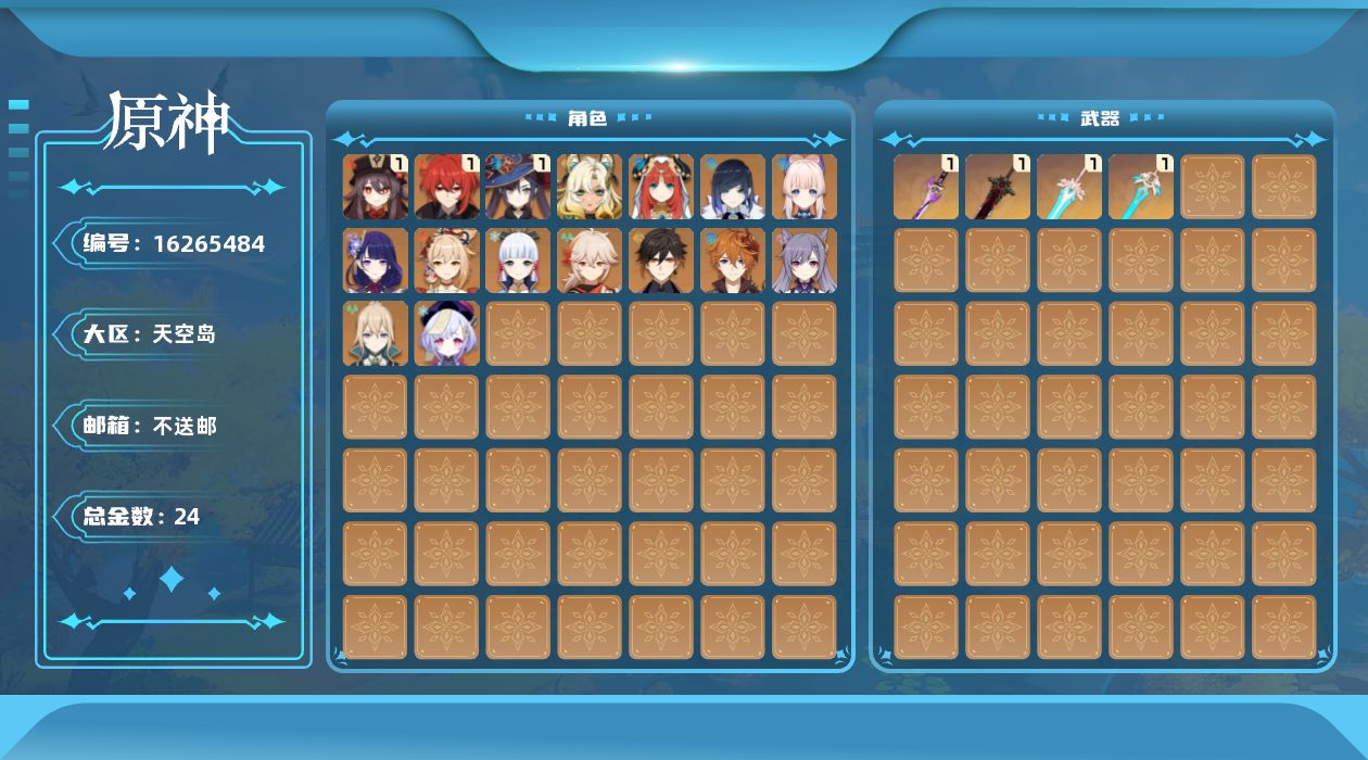 [16265484]56级/24黄/男主/16个五星角色/5个五星武器