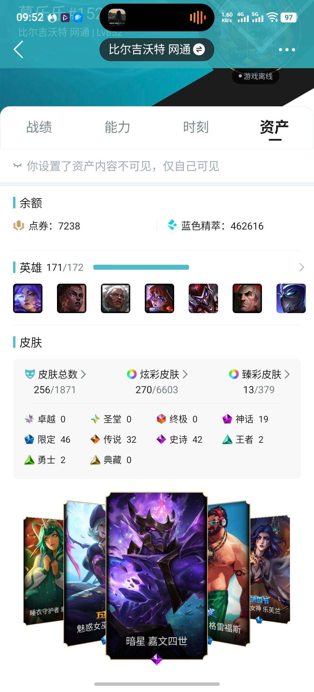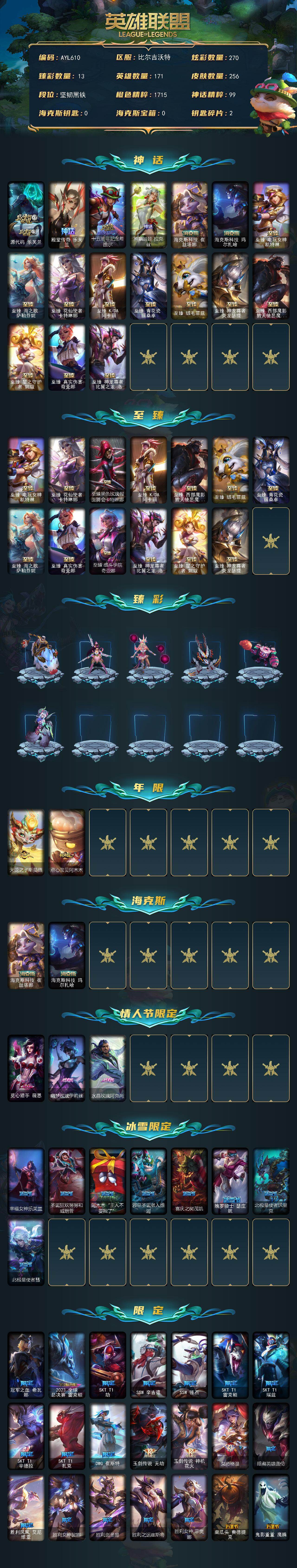 [16274127]【店主推荐捡漏号】未定级段位-171英雄-256皮肤-270炫彩-0终极-19神话-46限定-32传说-42史诗