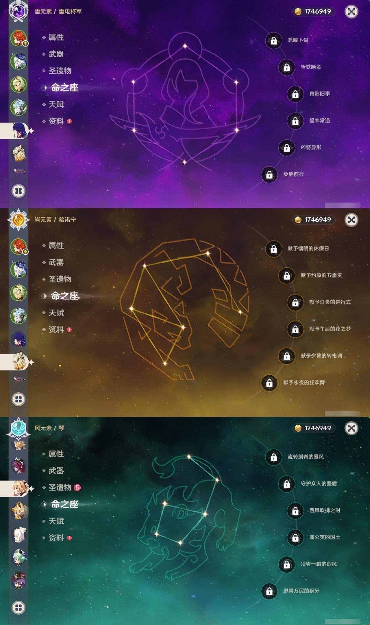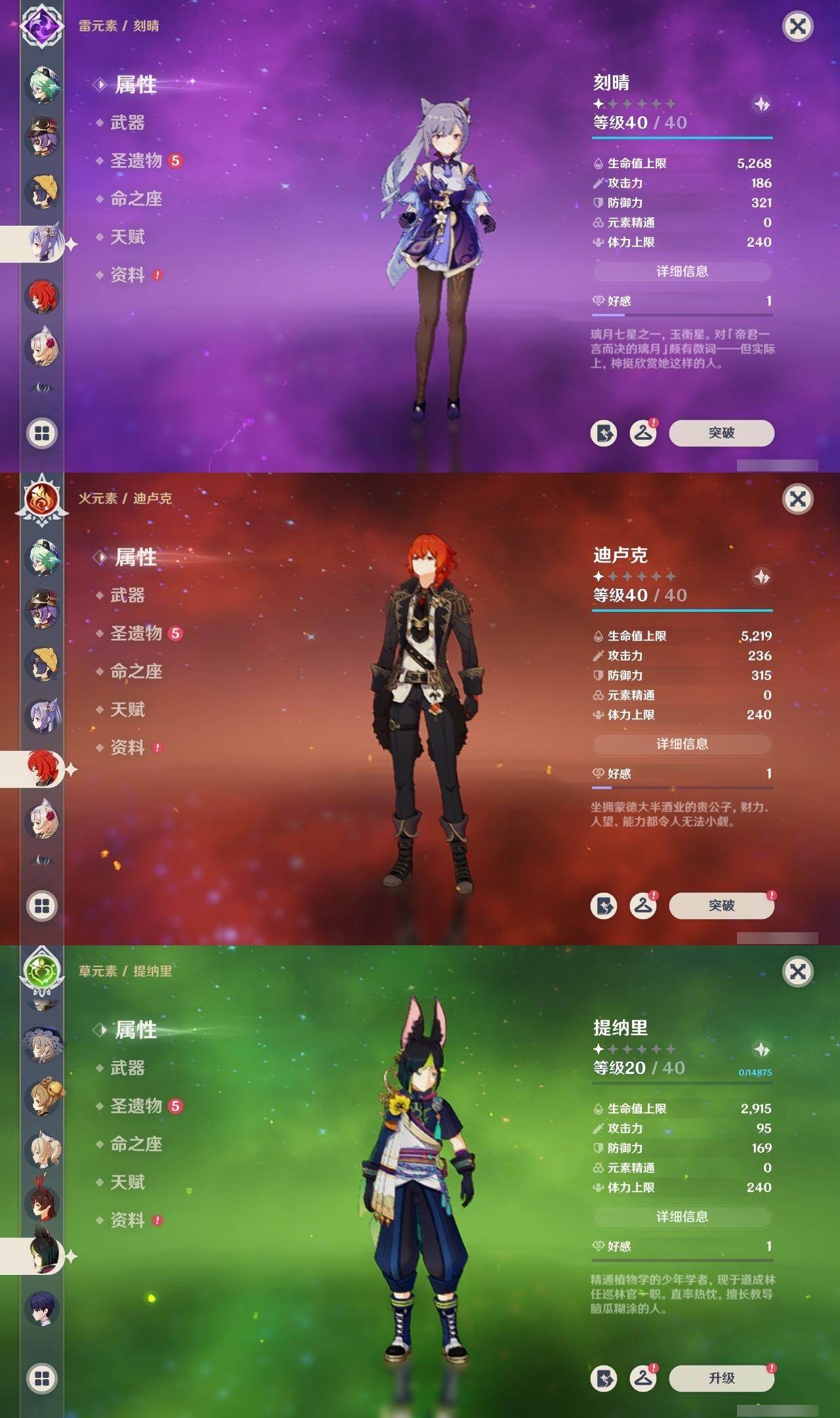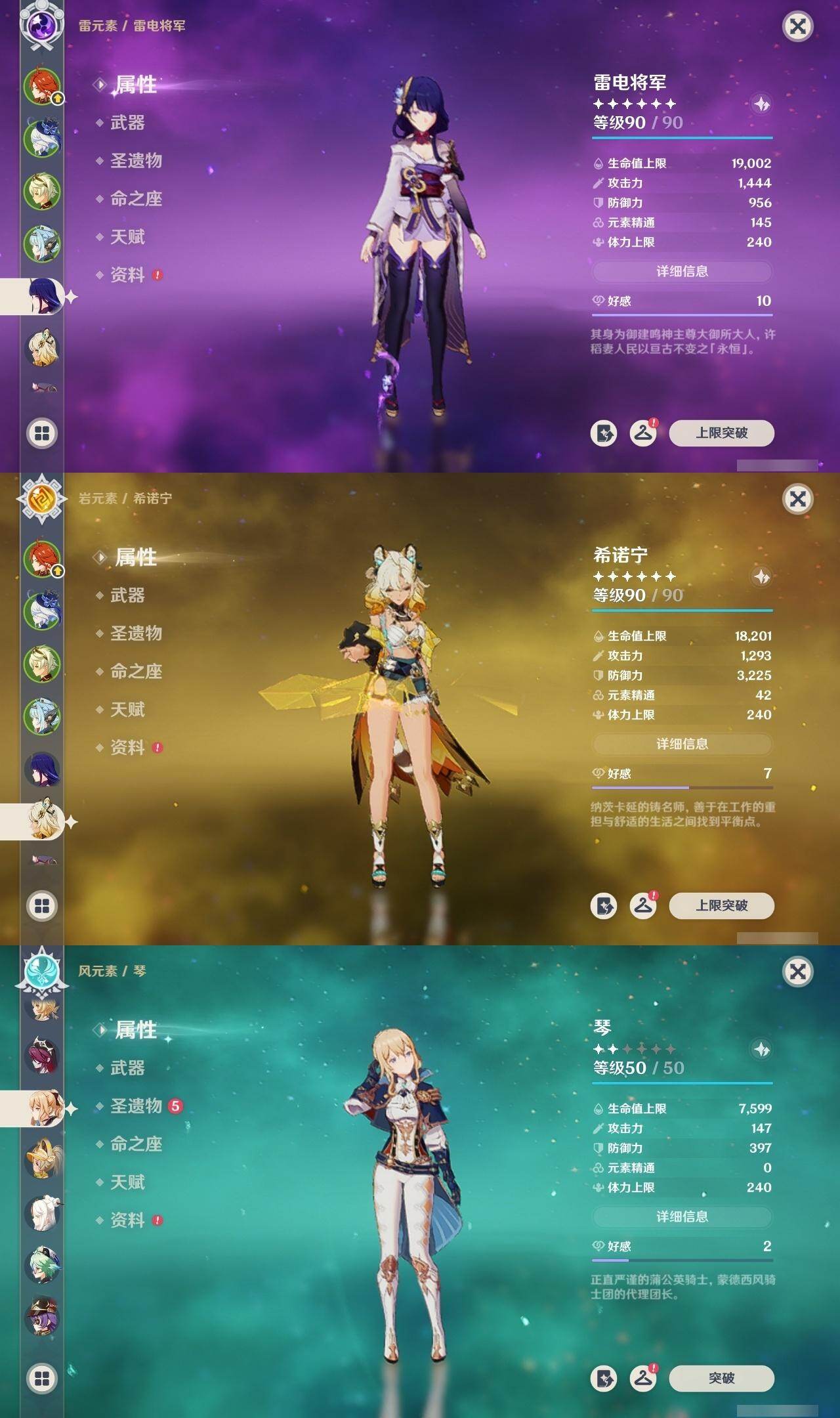 雷电将军,琴,刻晴,迪卢克