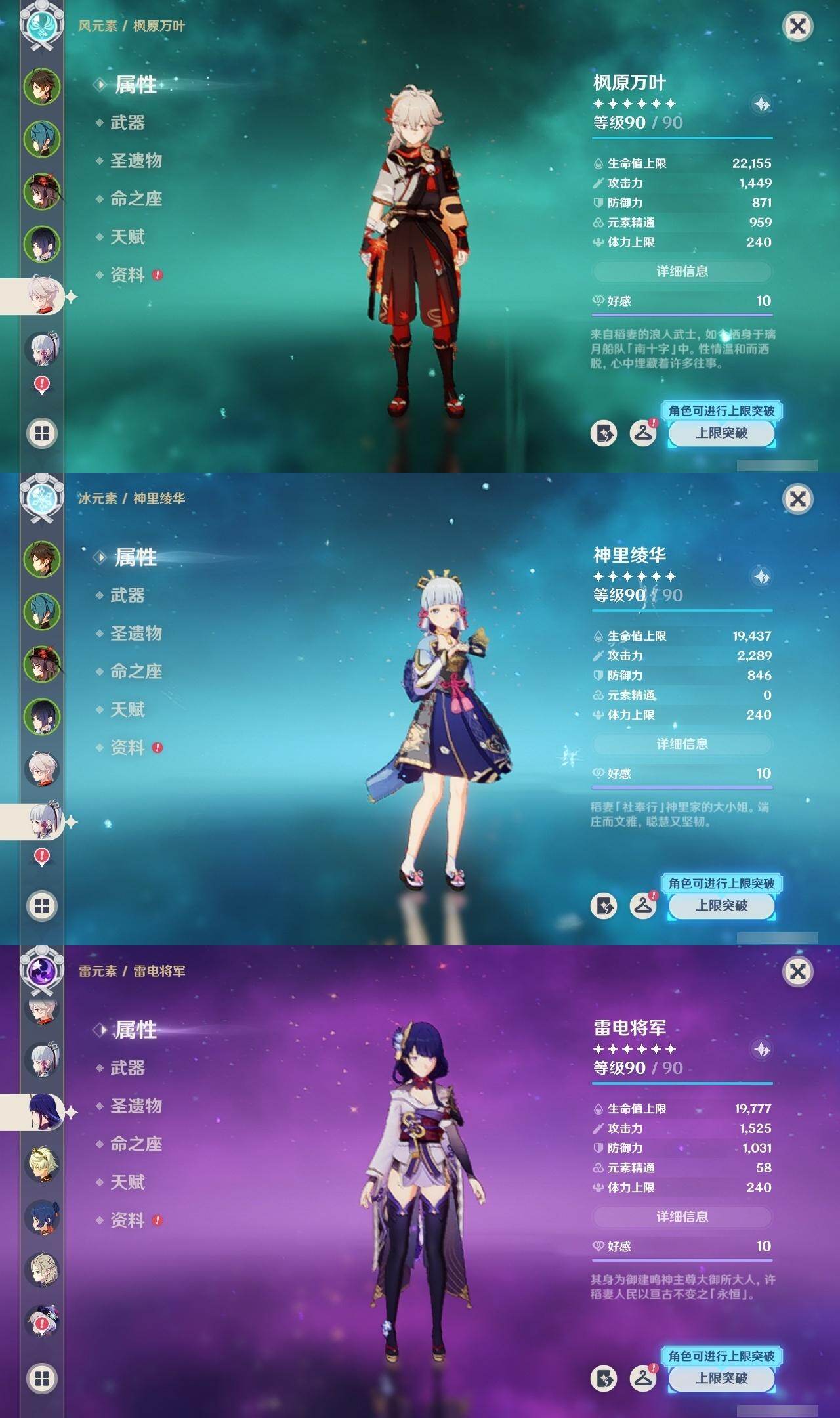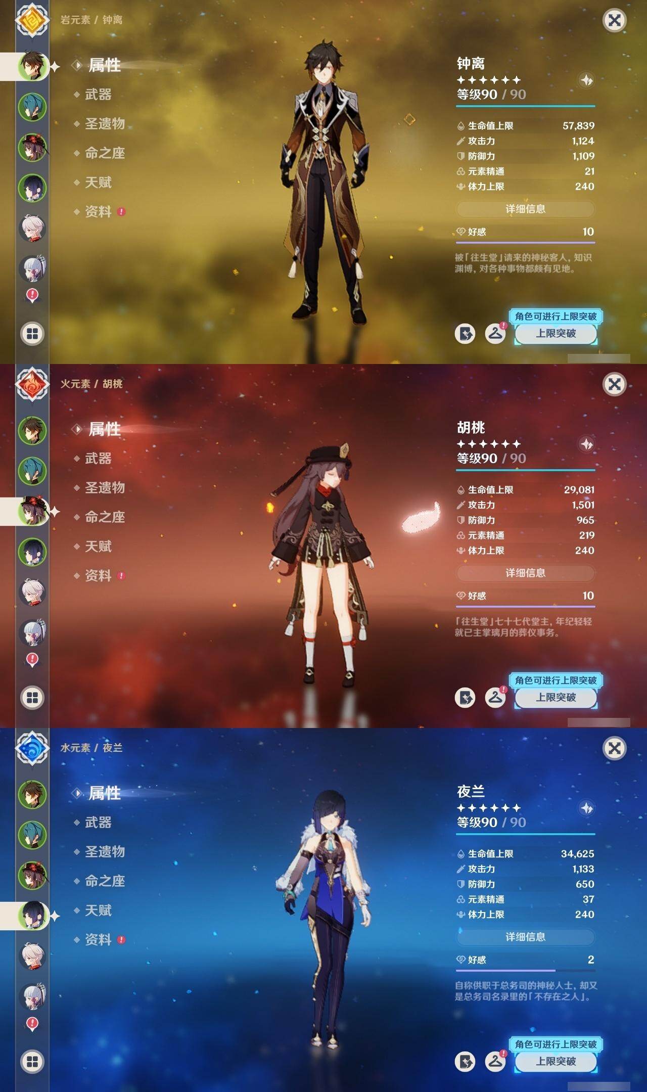 钟离,胡桃,枫原万叶,神里凌华,雷电将军,阿贝多,七七,珊瑚宫心海,莫娜,申鹤,刻晴,迪卢克