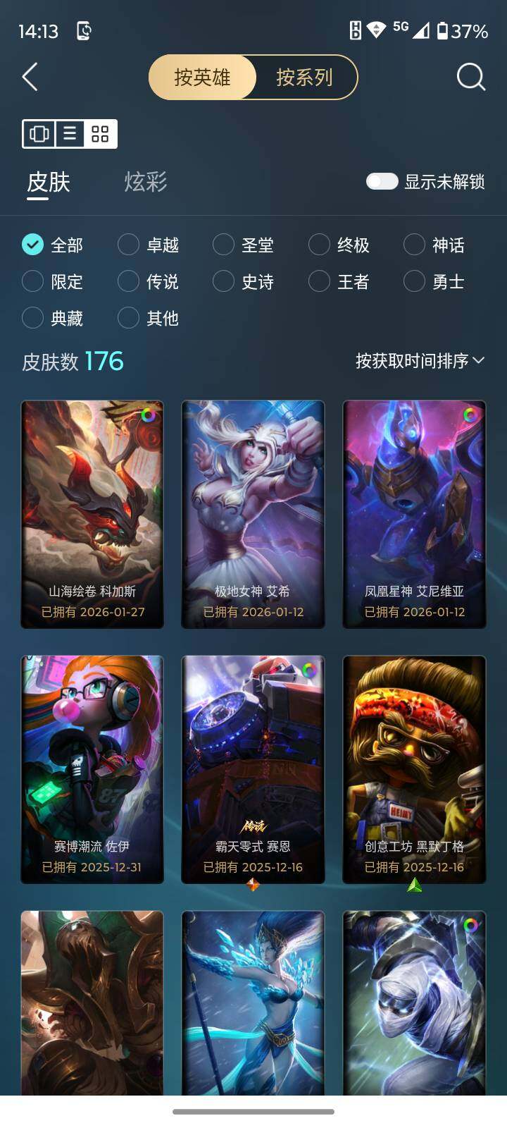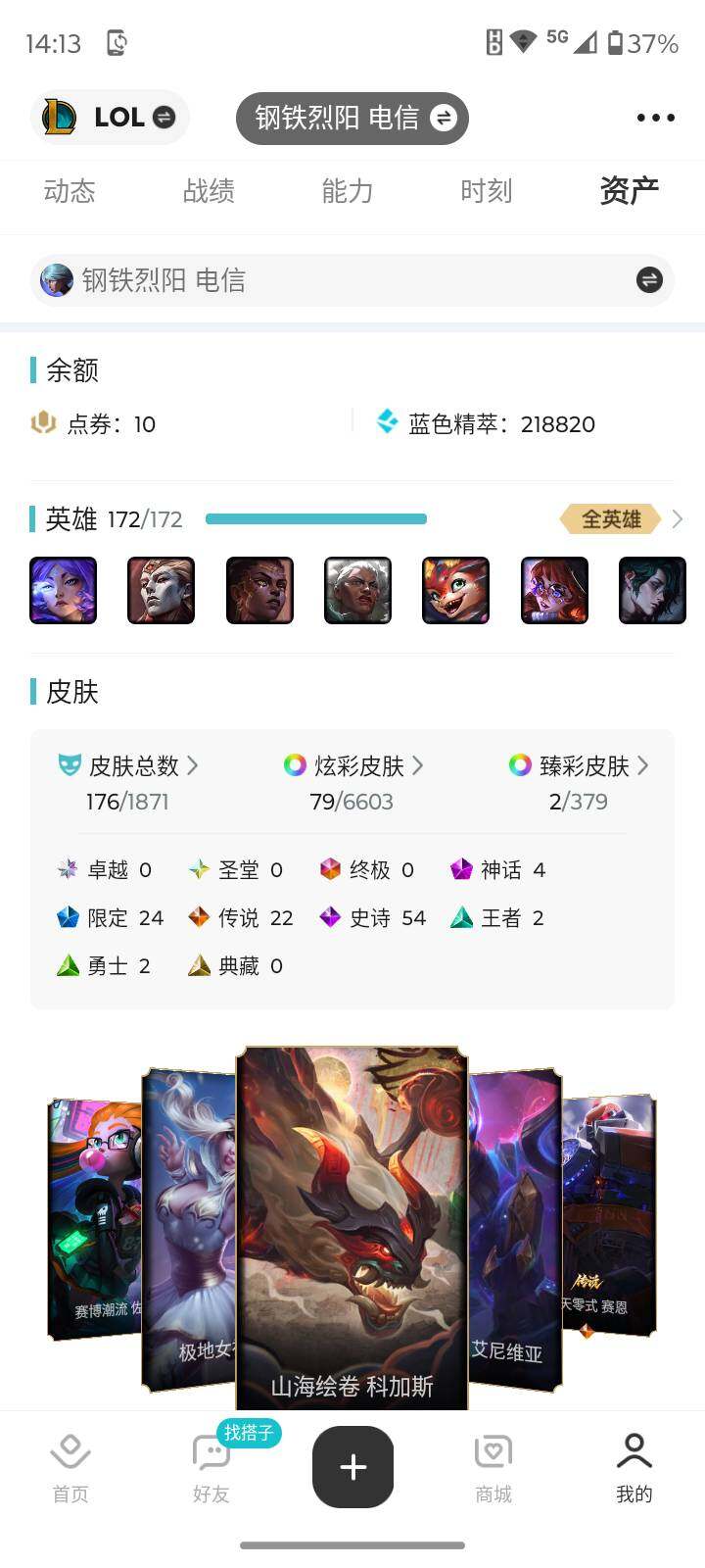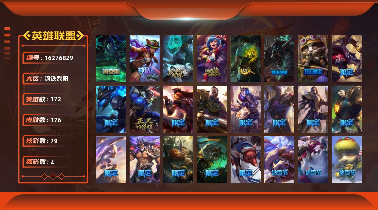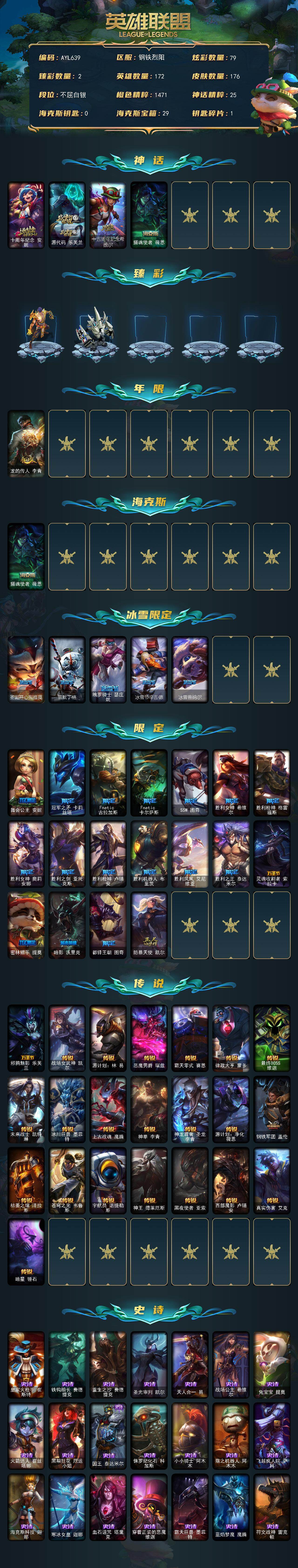 [16276829]【店主推荐捡漏号】白银段位-172英雄-176皮肤-79炫彩-0终极-4神话-24限定-22传说-54史诗