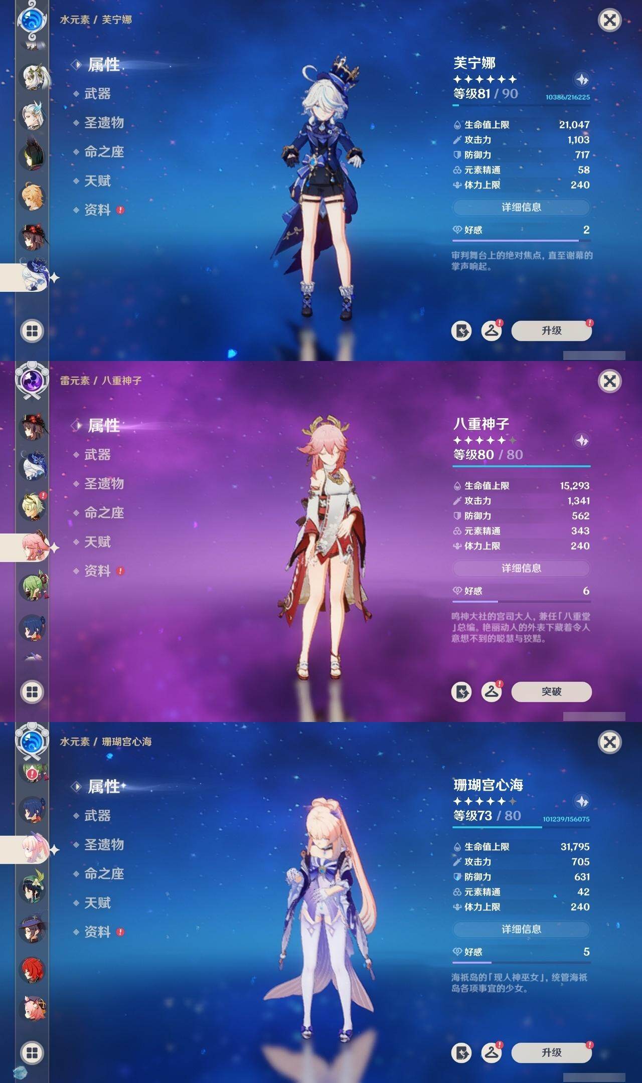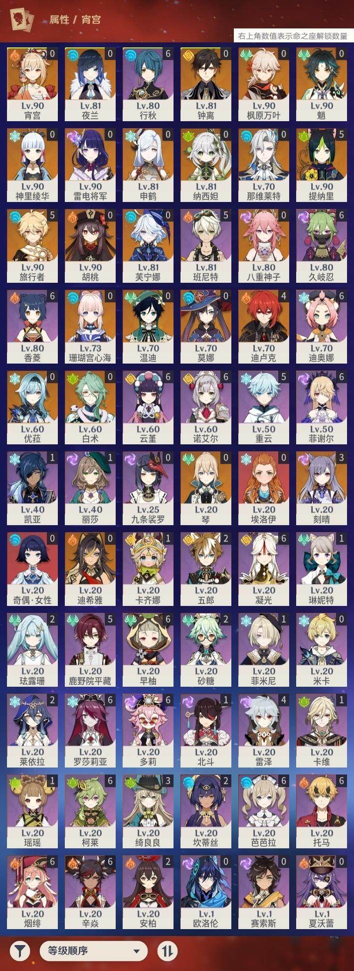 [16298513]59级/45黄/男主/23个五星角色/10个五星武器
